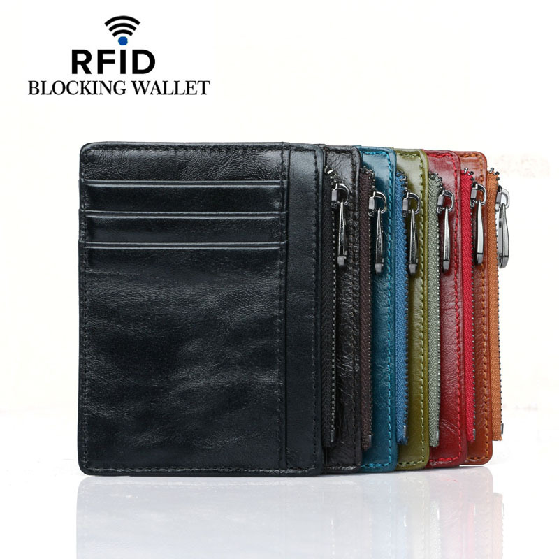 Amazon hot top layer cowhide wax leather card bag a generation of men’s and women’s leisure zipper change purse