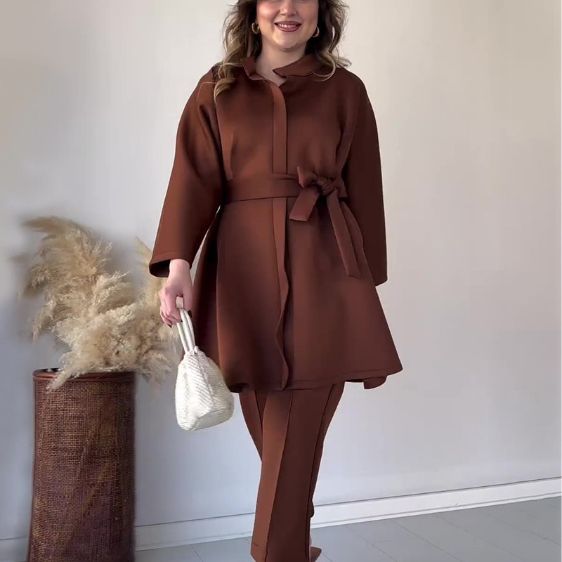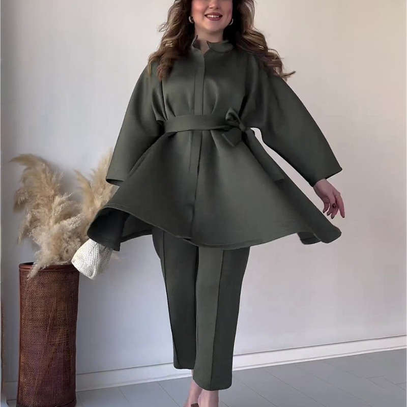 | nameOriginal | Amazon independent station 2024 European and American spring new long sleeve loose belt top cropped pants fashion suit women |