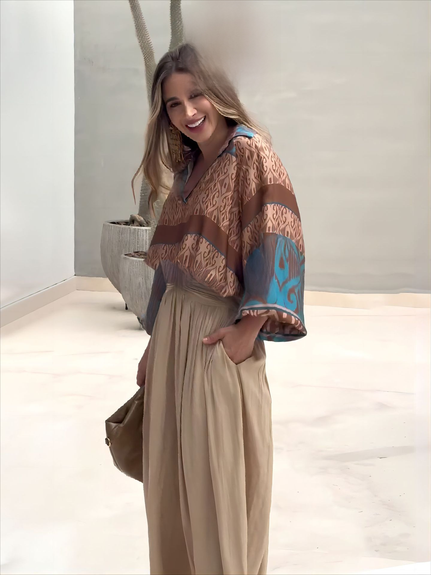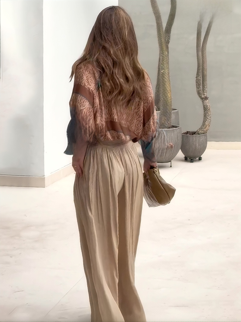 | nameOriginal | Amazon independent station European and American 2023 autumn new European and American Yama positioning printed top wide leg pants two-piece set |