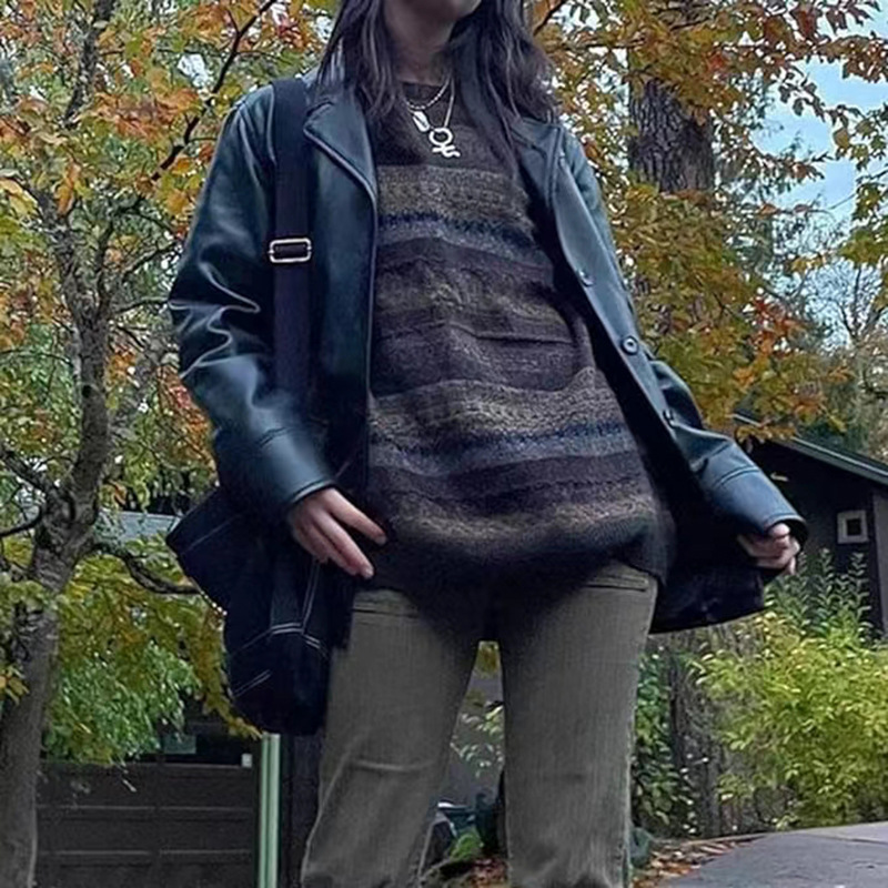 | nameOriginal | Amazon independent station European and American new style American retro striped long-sleeved sweater women's casual pullover sweater 2351 |