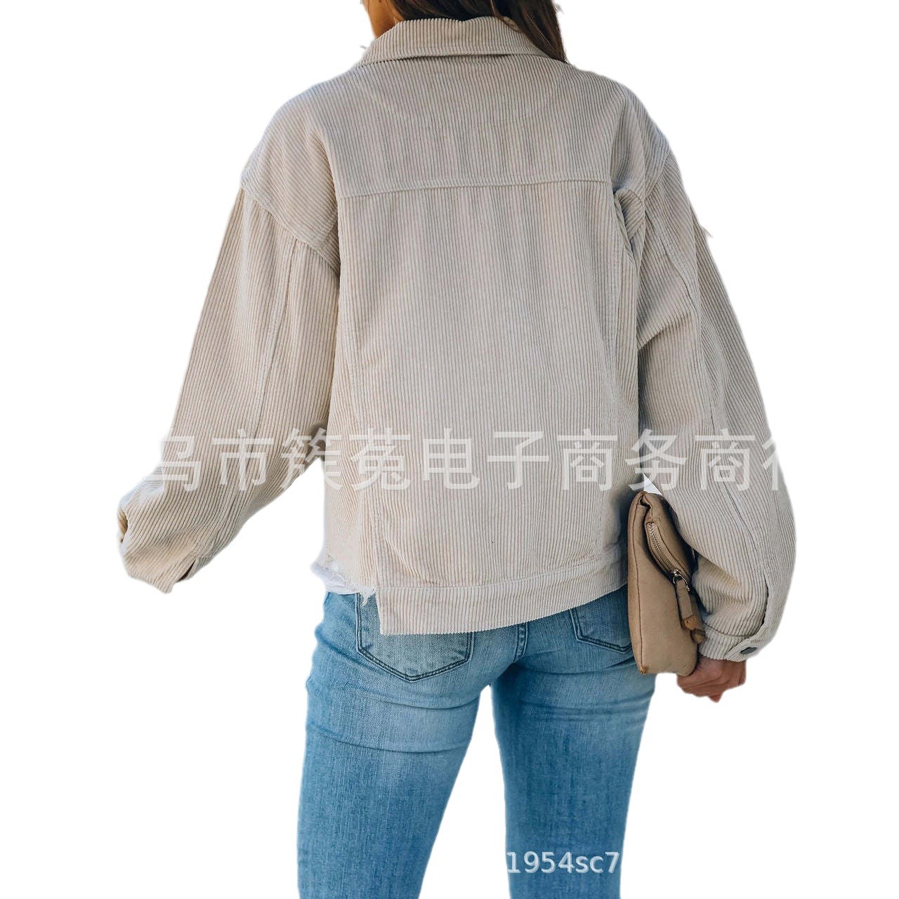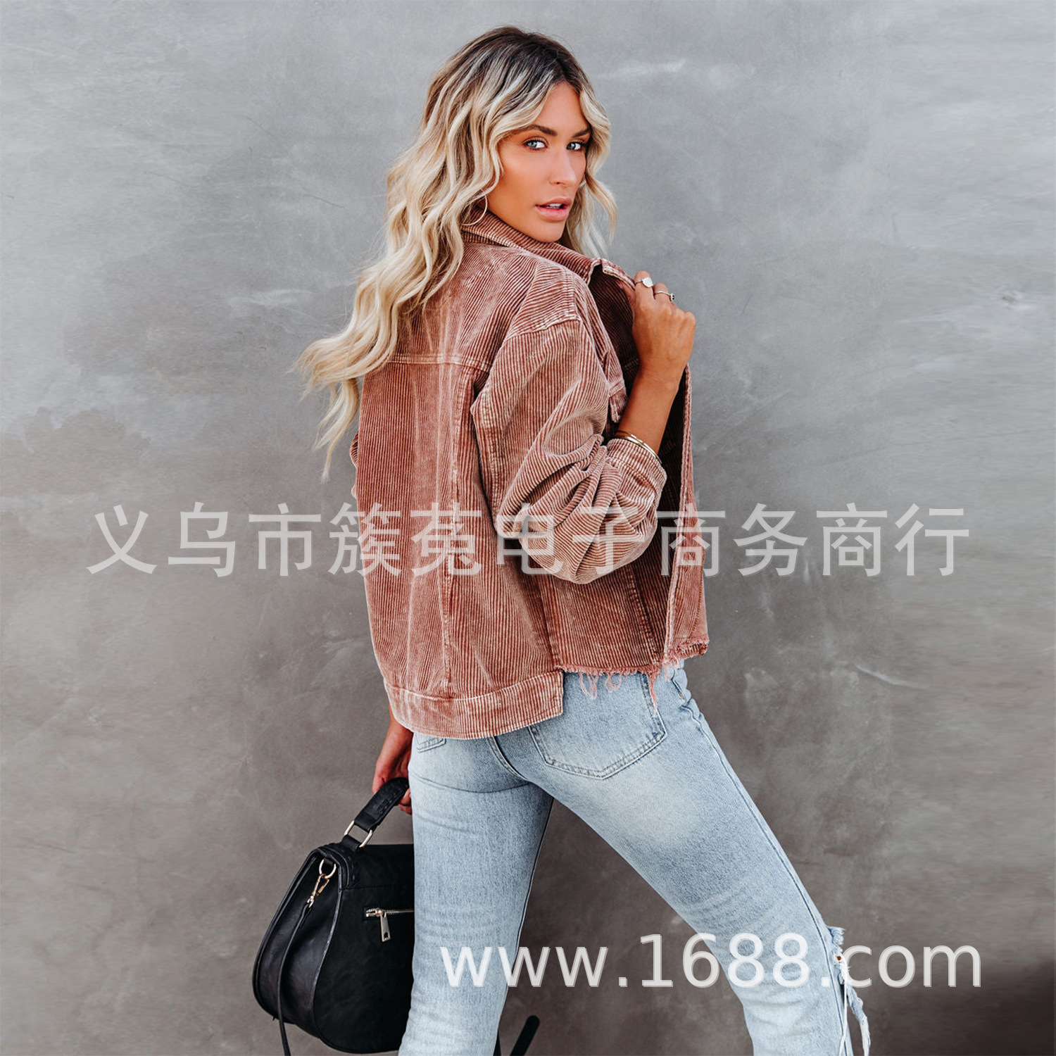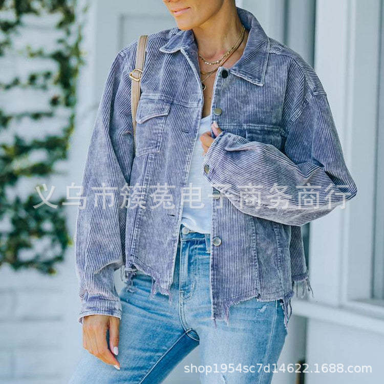 Amazon independent station popular women’s tassel jacket autumn and winter washed distressed corduroy coat multi-color in stock