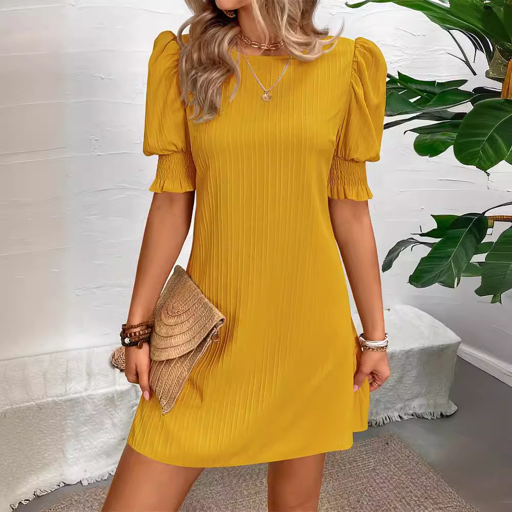 | nameOriginal | Amazon Jacquard Striped A- line Skirt Bubble Sleeve Short Sleeve dress Women's Skirt Cross-border Women's Skirt |