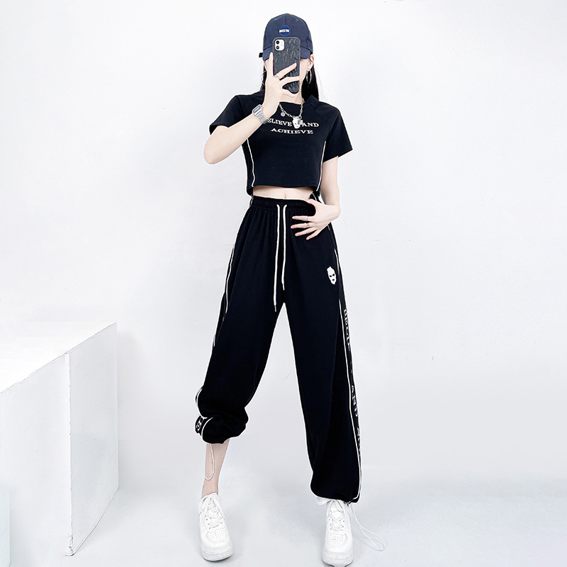 Amazon jazz suit women’s trendy jazz hip hop sports Street hot girl short navel top fashion suit