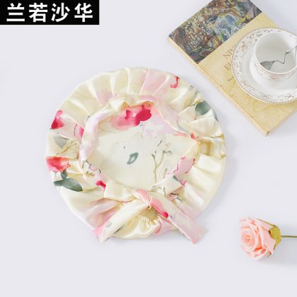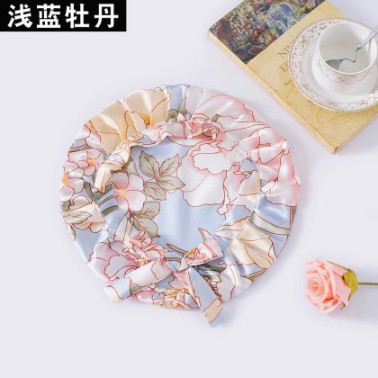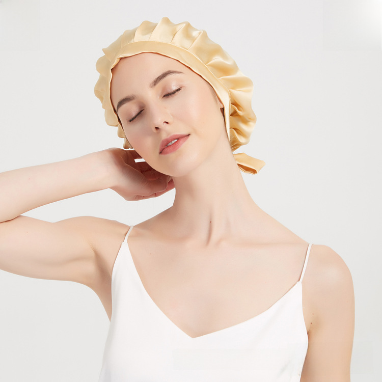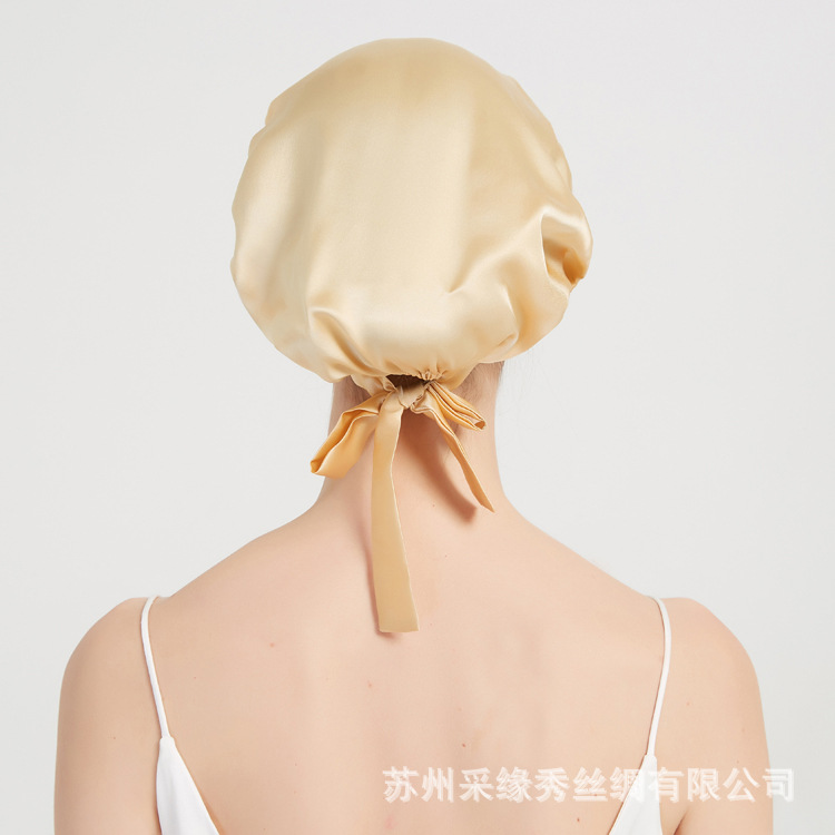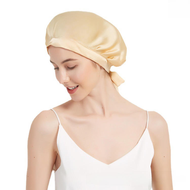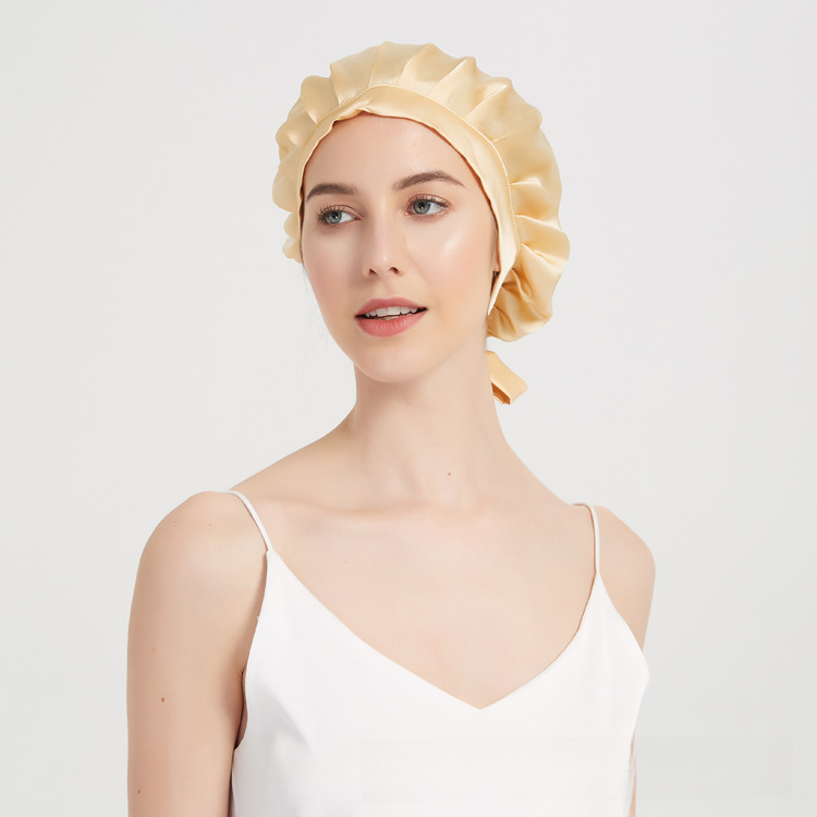 Amazon Mulberry Silk Crepe Satin Yuezi Household Hair Care Lace-up Pleated Adjustable Silk Long Hair Silk Nightcap
