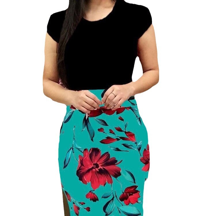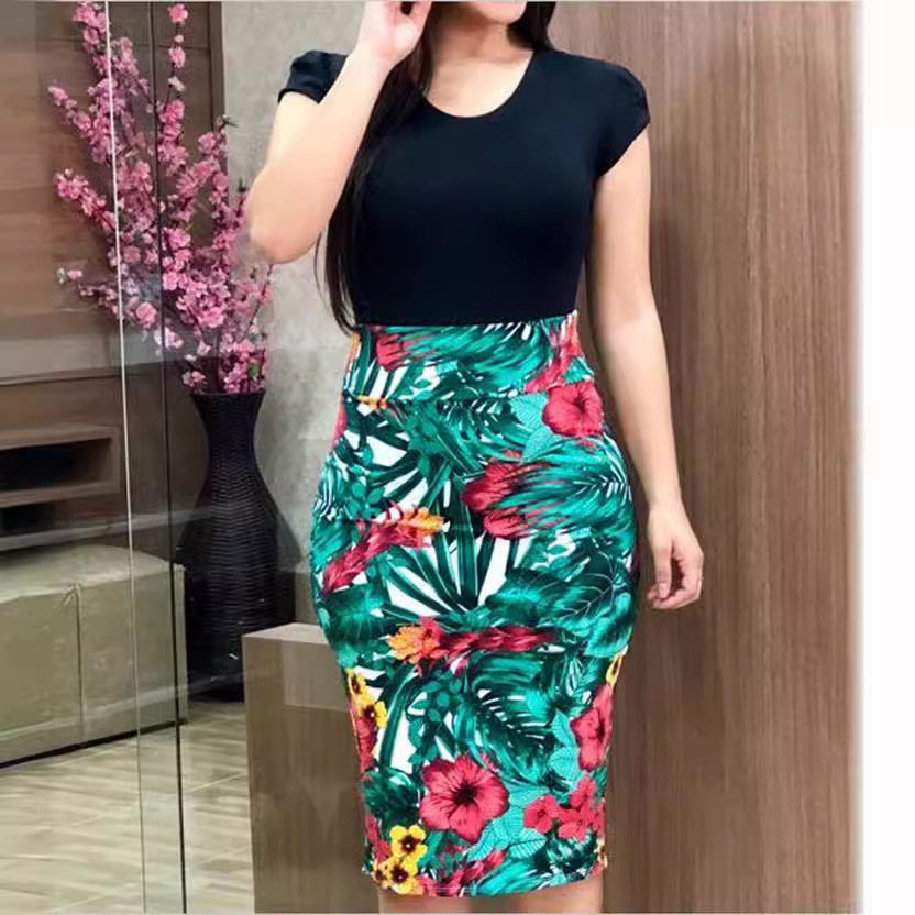 | nameOriginal | Amazon New 2024 Autumn European and American Color-block Digital Printing Round Neck Hip Short-sleeved Dress Large Size Women's Clothing |
