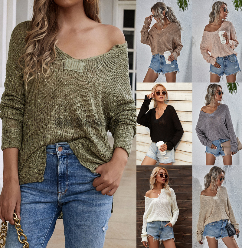 | nameOriginal | Amazon New Autumn and Winter European and American V-neck Cross-border Women's Knitted Loose Solid Color Foreign Trade Fashion Pullover Sweater Women |
