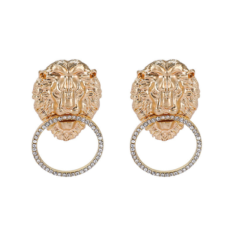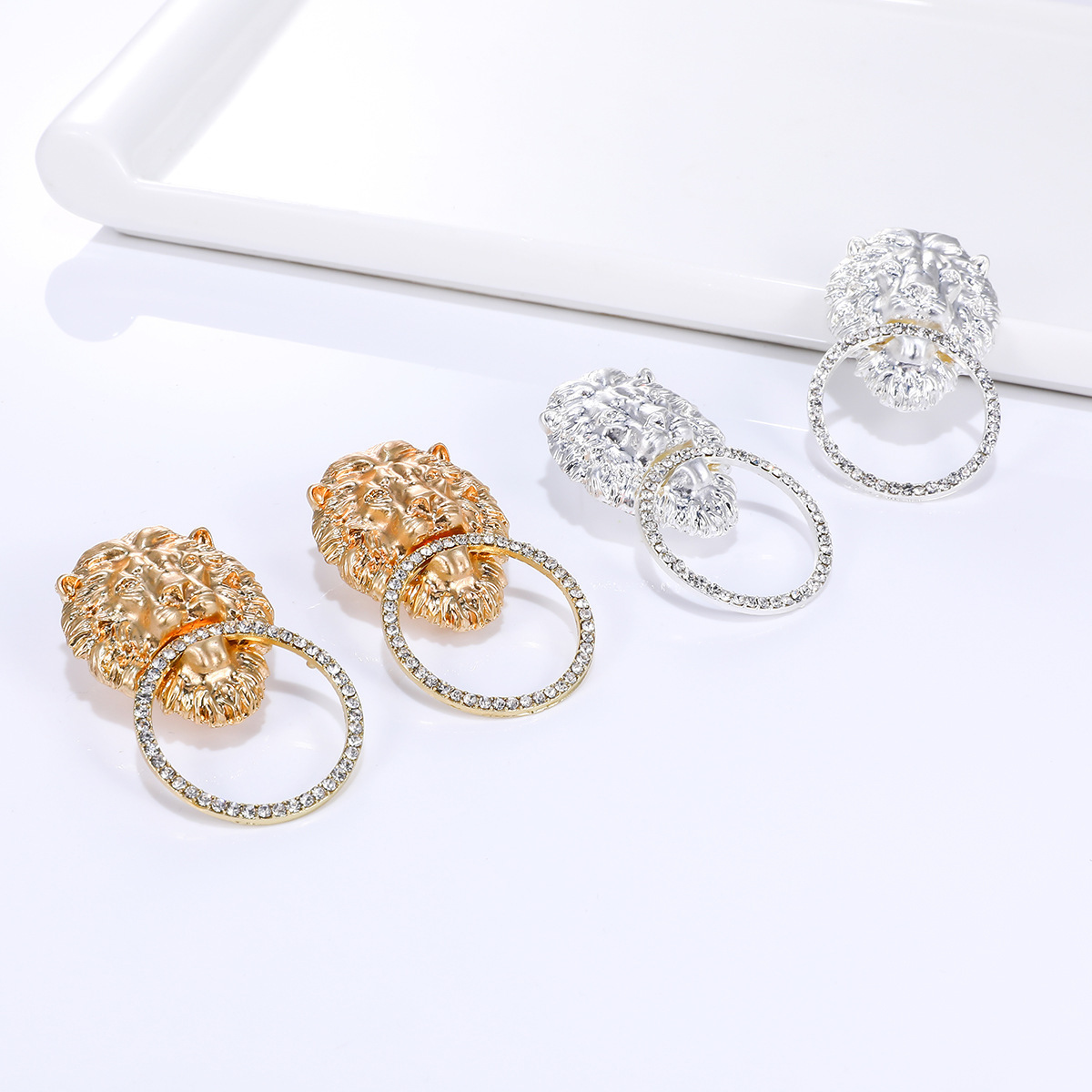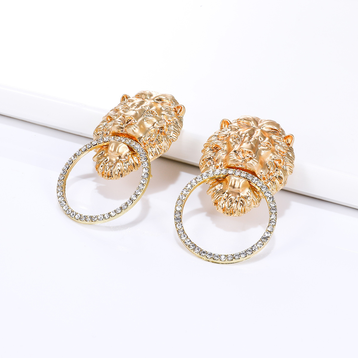 | nameOriginal | Amazon new creative European and American retro lion head shape diamond ring earrings cross-border earrings wholesale |
