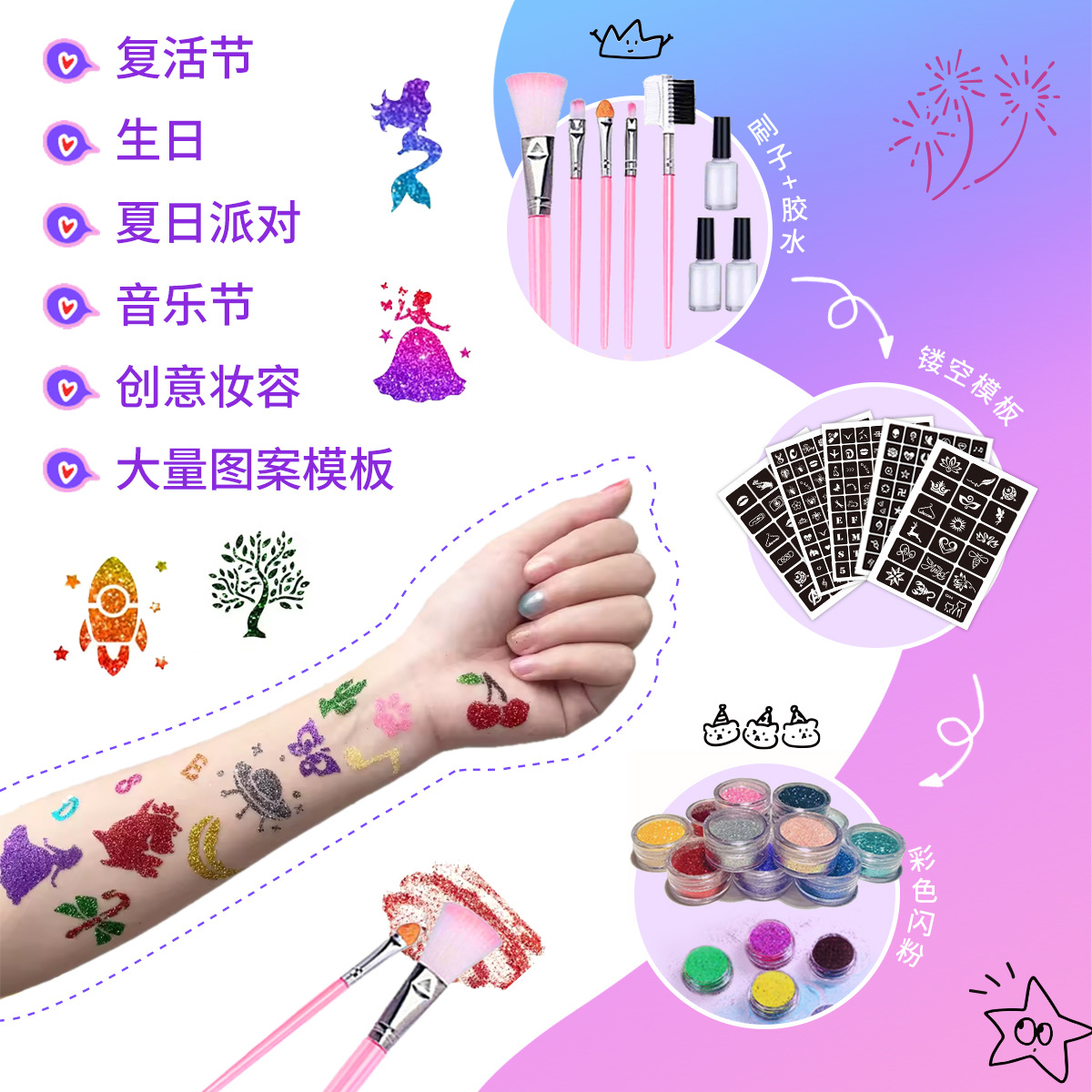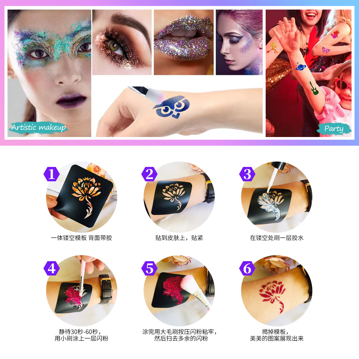 | nameOriginal | Amazon New Diamond Glitter Tattoo suit 36 Color Holiday Party Make-up Glitter Tattoo suit |