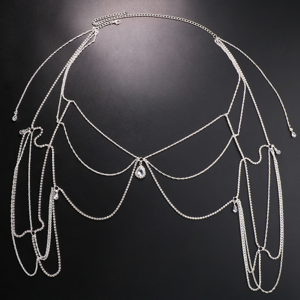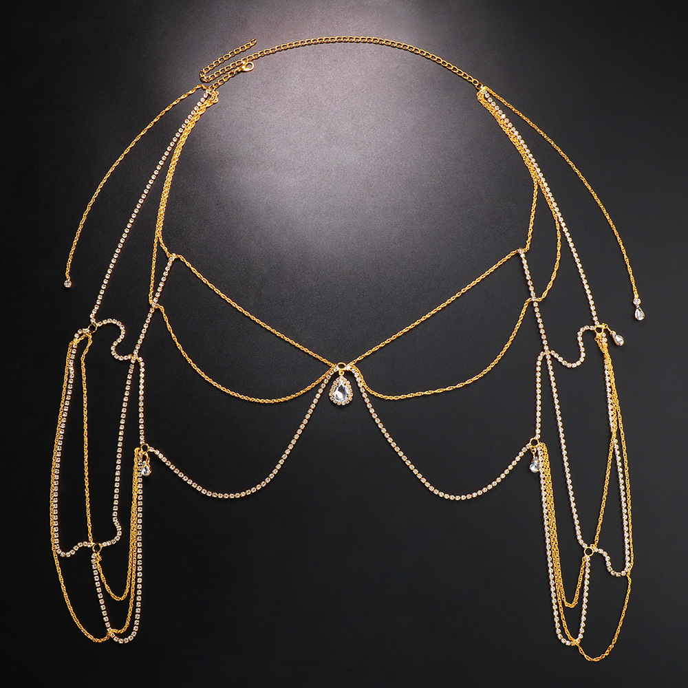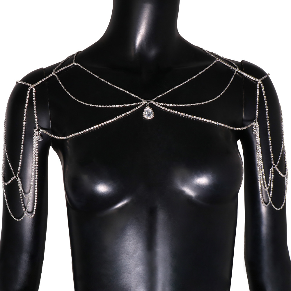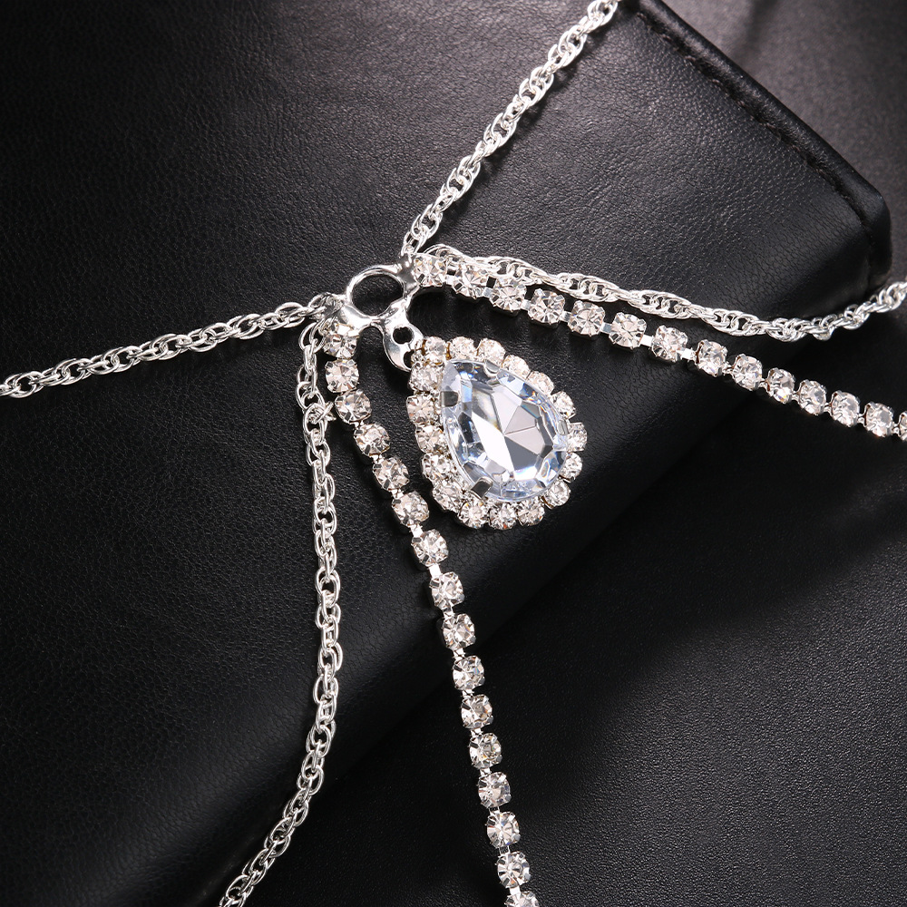 Amazon New Jewelry Multi-layer Water Drop Shoulder chain Bridal Wedding Light Luxury Dress Back chain for Women body chain