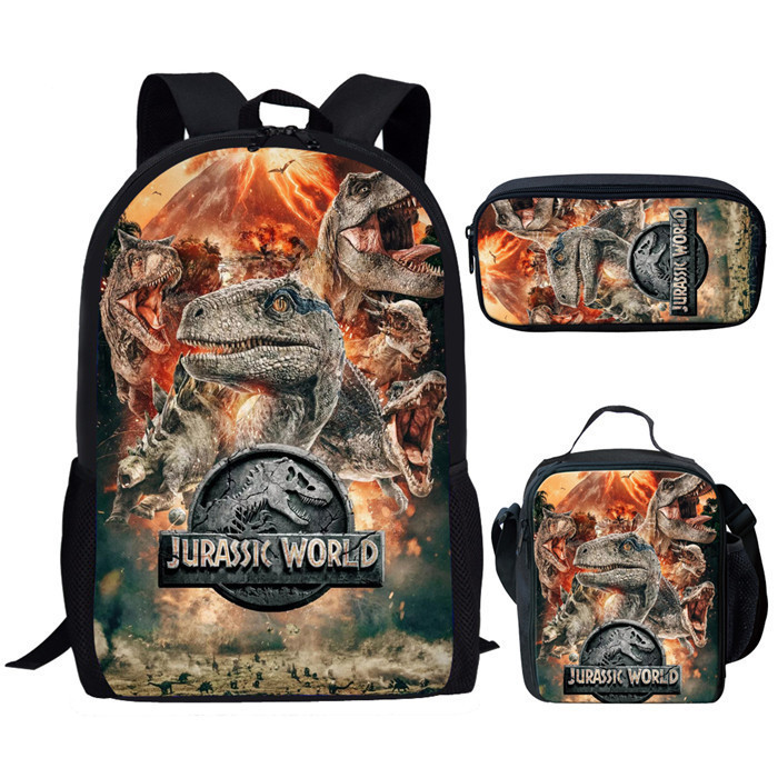 Amazon New Jurassic World Dinosaur Backpack Jurassic World Student Schoolbag Lunch Bag Pencil Bag