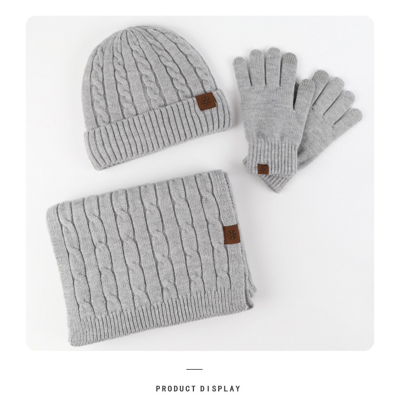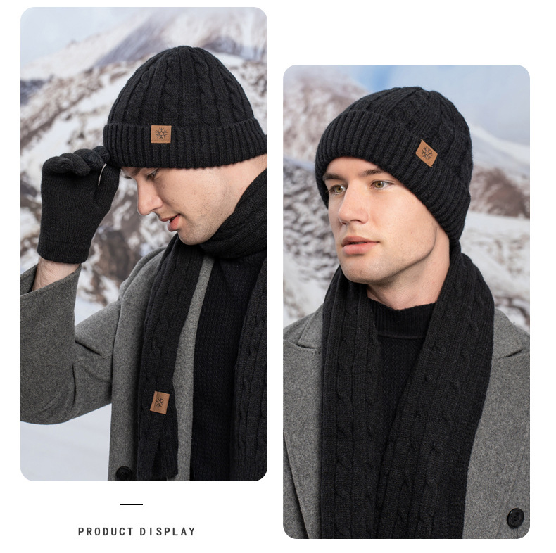 | nameOriginal | Amazon New Men's Knitted Wool Hat Scarf Gloves Three-piece Winter Women's Cashmere Warm Thickened Scarf |