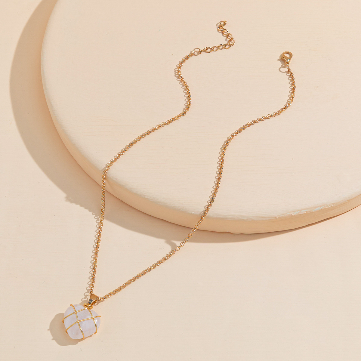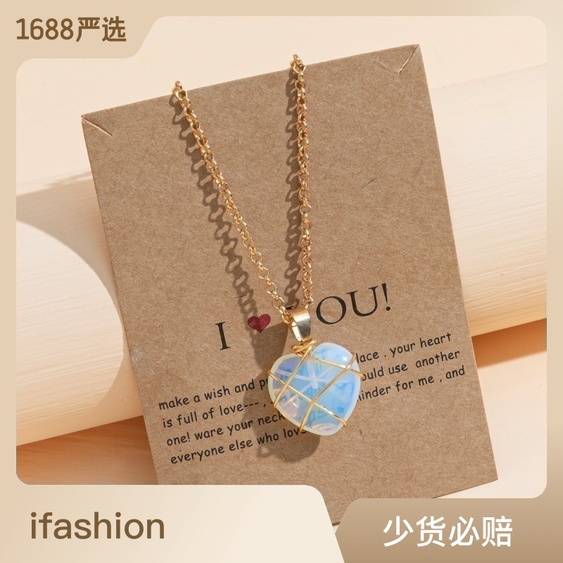 | nameOriginal | Amazon New Round Copper Wire Water Drop Shape Crystal Pendant European and American Jewelry Natural Stone Love Pendant Necklace |
