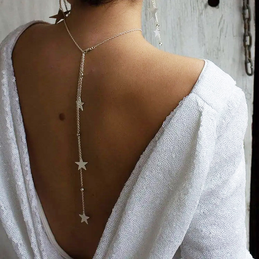 Amazon new star pendant Back chain sexy rhinestone tassel body chain wedding jewelry female Back chain
