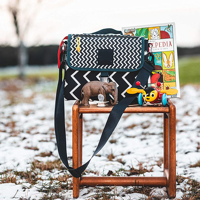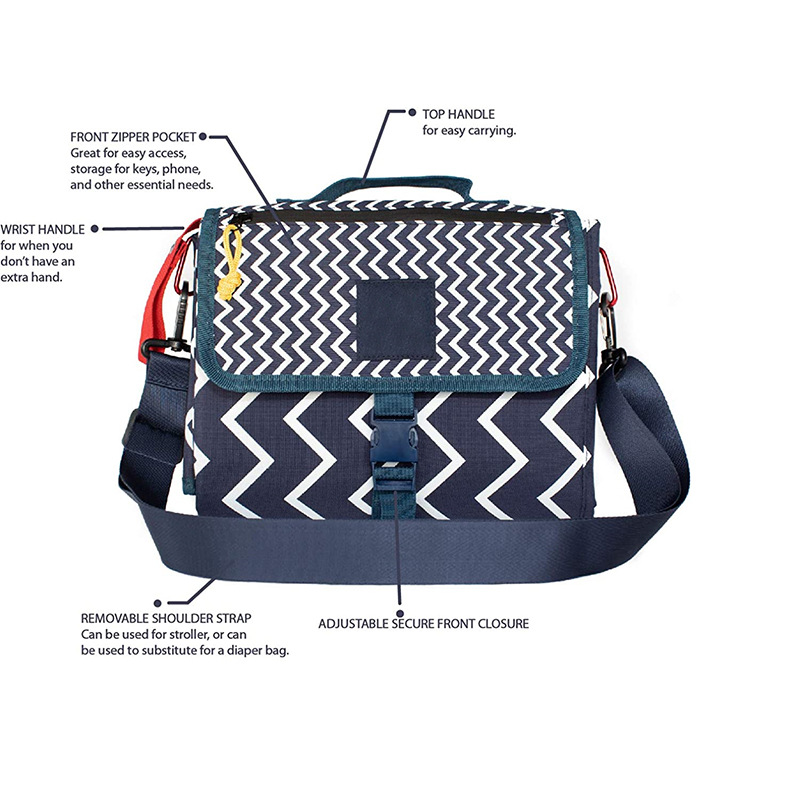 Amazon New Stripe Printed Multifunctional Diaper Bag Convenient Out Changing Diaper Pad with logo