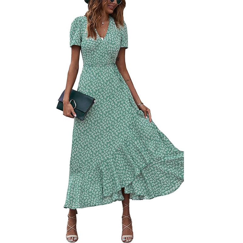 | nameOriginal | Amazon New Women's Summer Wrap Long Dress Casual Bohemian Floral V-neck Short Sleeve Pleated Hem |