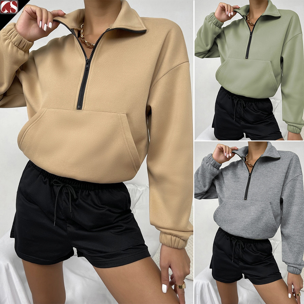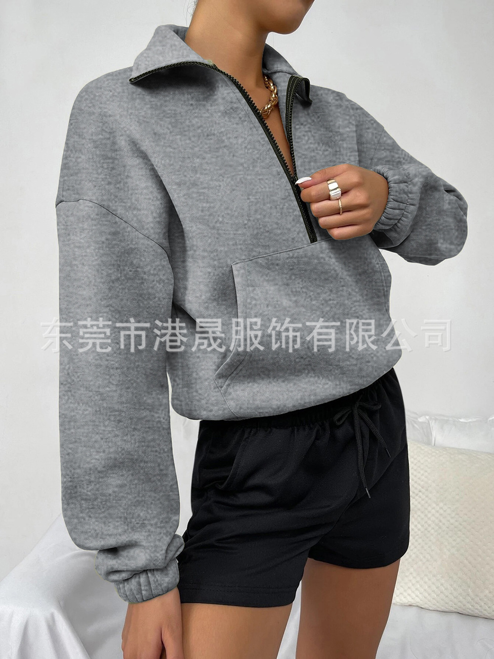 | nameOriginal | Amazon popular 2023 European and American autumn and winter cross-border foreign trade top zipper stand collar long sleeve fleece-lined loose sweater for women |