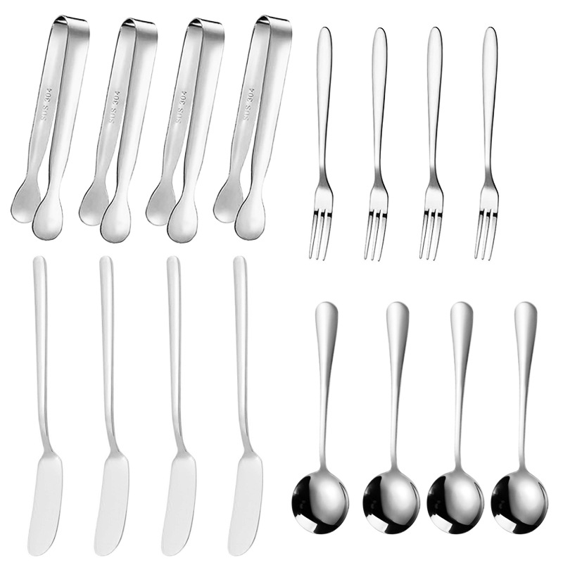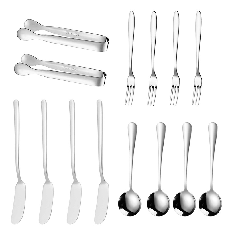 | nameOriginal | Amazon stainless steel spoon fork butter knife set coffee spoon dessert fork 14 piece cheese knife ice holder |