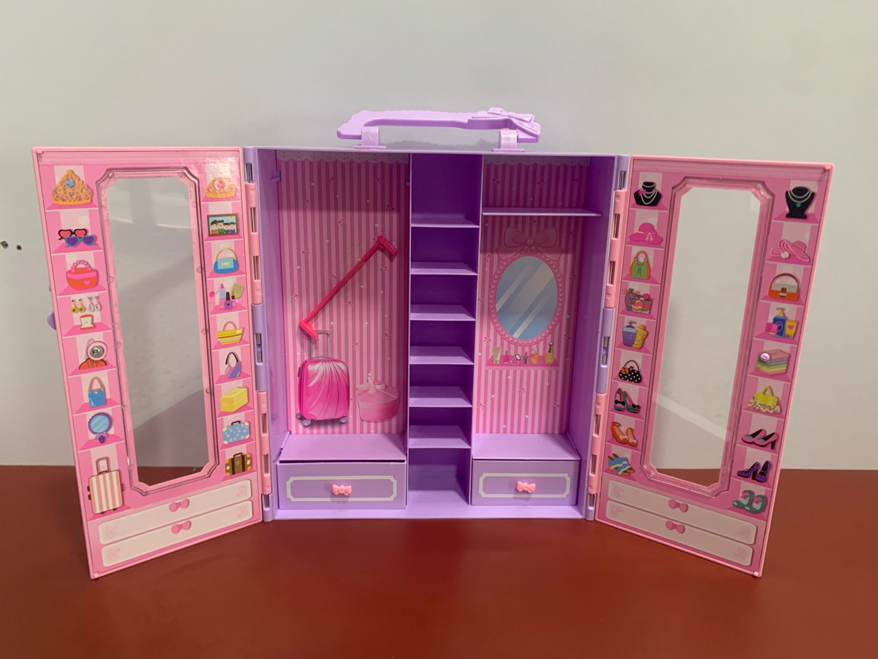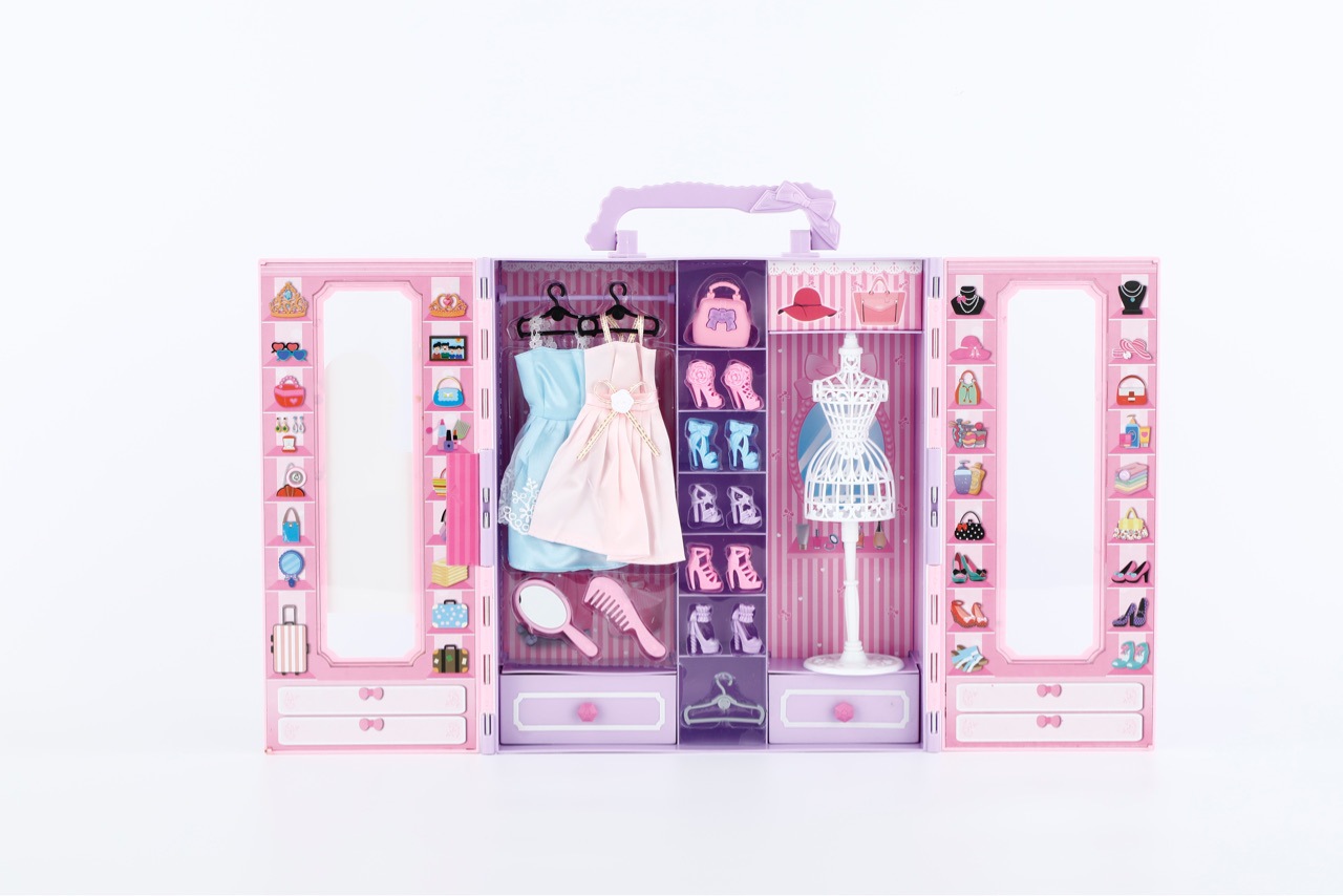 Amazon Toys cross-border e-commerce portable box plastic wardrobe girl Barbie doll dressing wardrobe factory direct sales