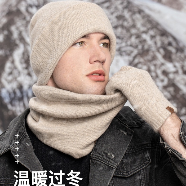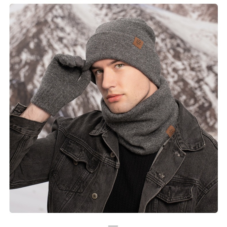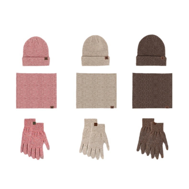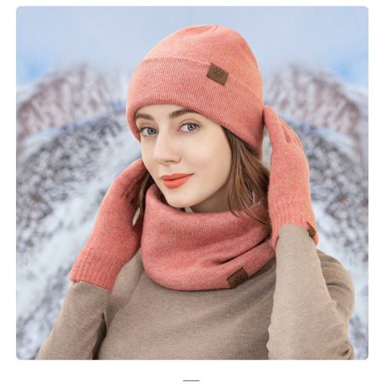 Amazon Winter Knitted Hat Scarf Gloves Three-piece Set fleece-lined Thickened Outdoor Cold and Snow suit