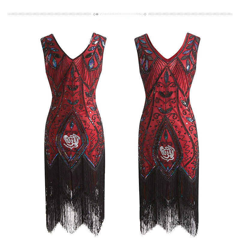 | nameOriginal | Amazon wish foreign trade explosions 1920s vintage dress handmade beaded sequins tassel evening dress plus size |