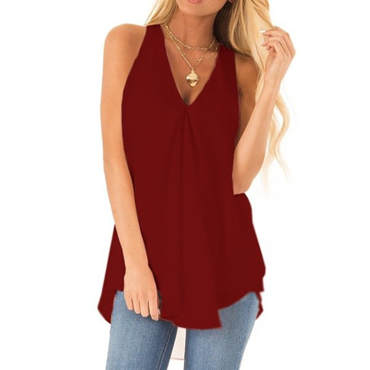 | nameOriginal | Amazon wish2020 new summer new popular hem loose sleeveless solid color top chiffon shirt |