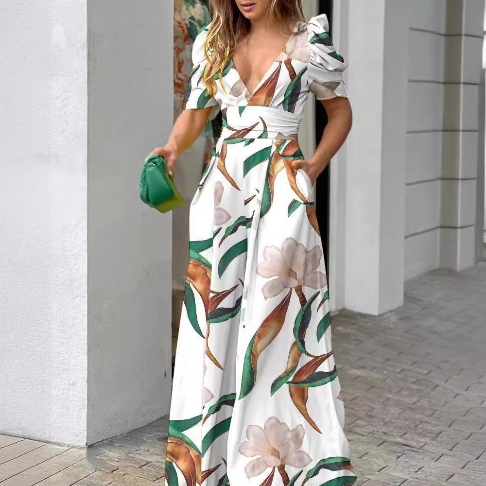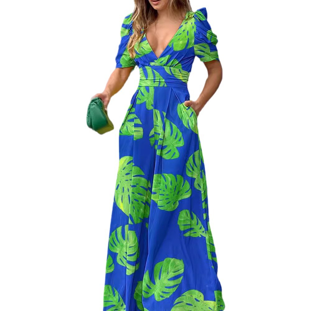| nameOriginal | Amazon Women's Clothing European and American Foreign Trade Cross-border Exclusive for Independent Station Printed V-Neck Waist Trousers Short Sleeve Pants |