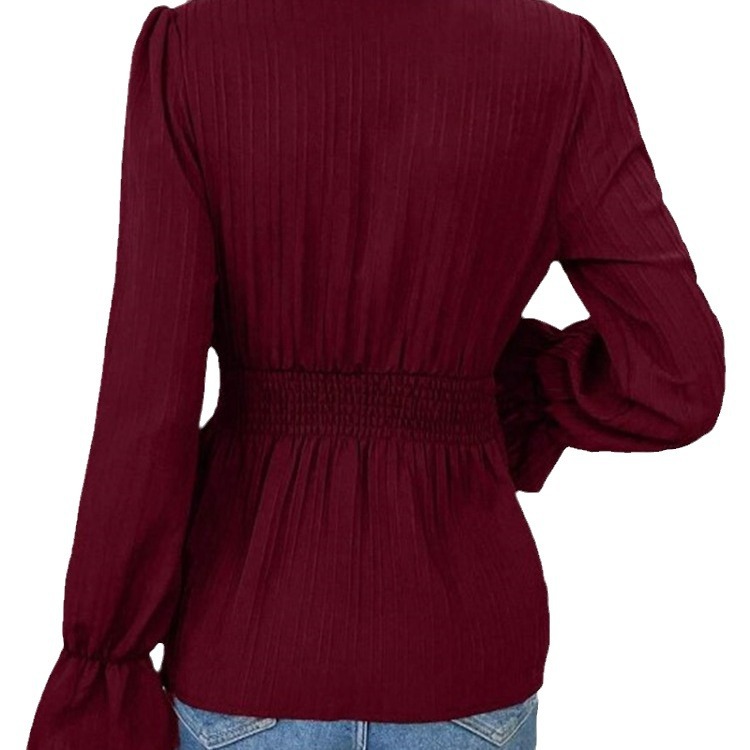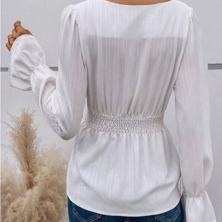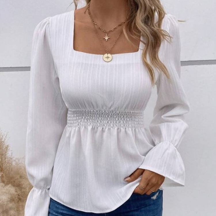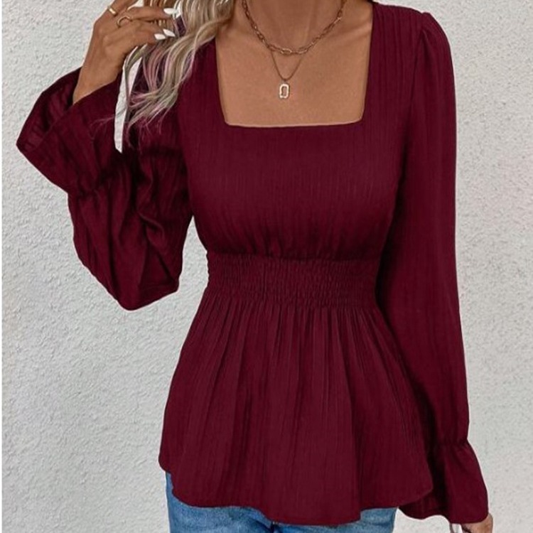 | nameOriginal | Amazon women's clothing European and American popular cross-border Women's square collar ruffle sleeve top elastic waist solid color slimming shirt |