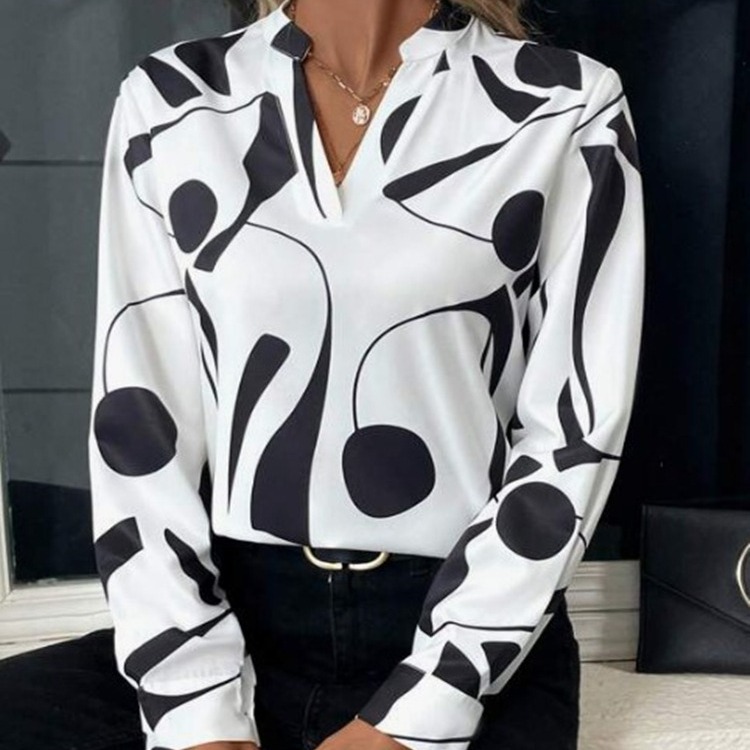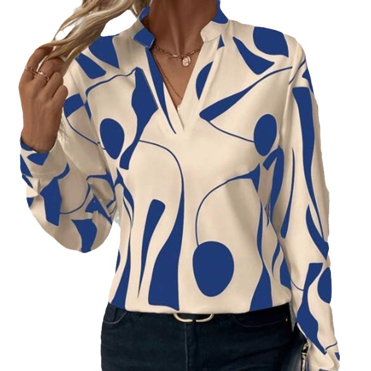 | nameOriginal | Amazon Women's cross-border new European and American spring and summer elegant shirt V-neck long sleeve printed slimming stand collar shirt |