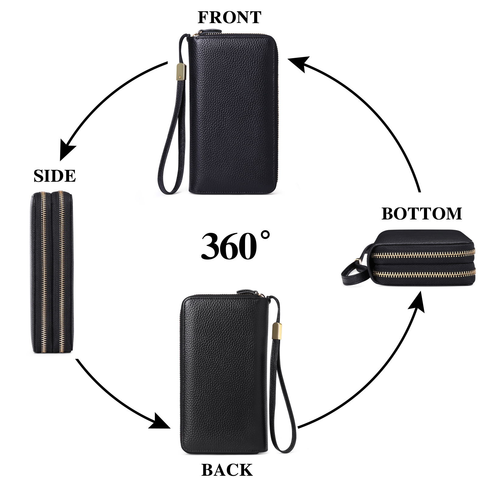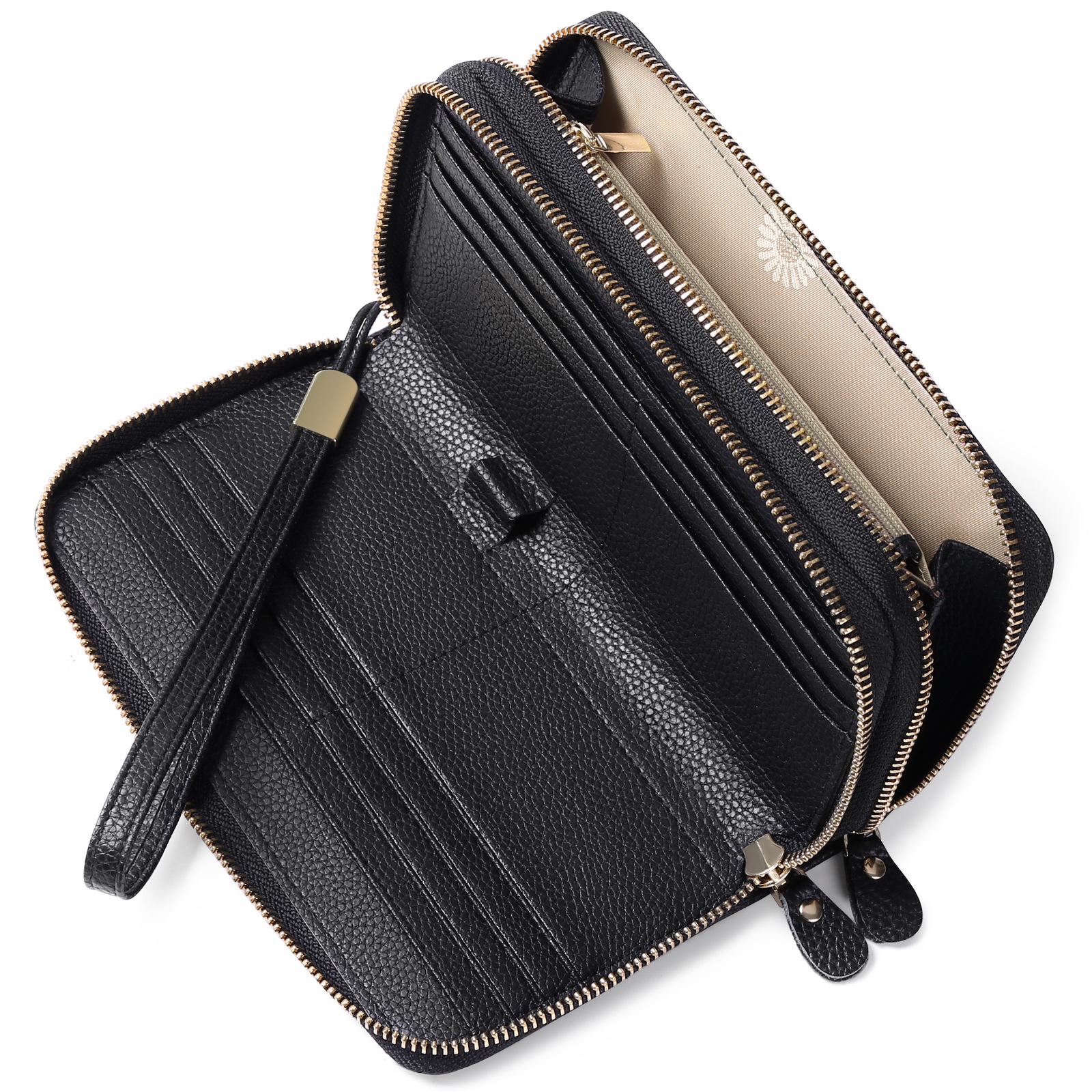Amazon Women’s long wallet RIFD first layer cowhide double zipper clutch European and American fashion genuine leather wallet