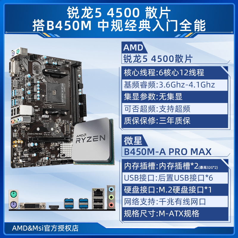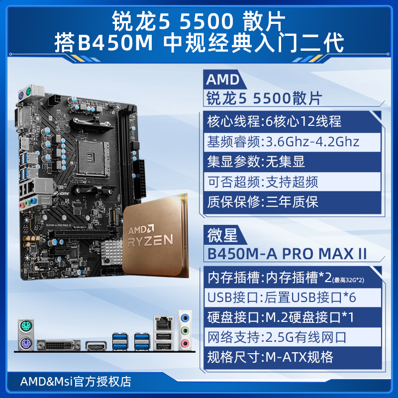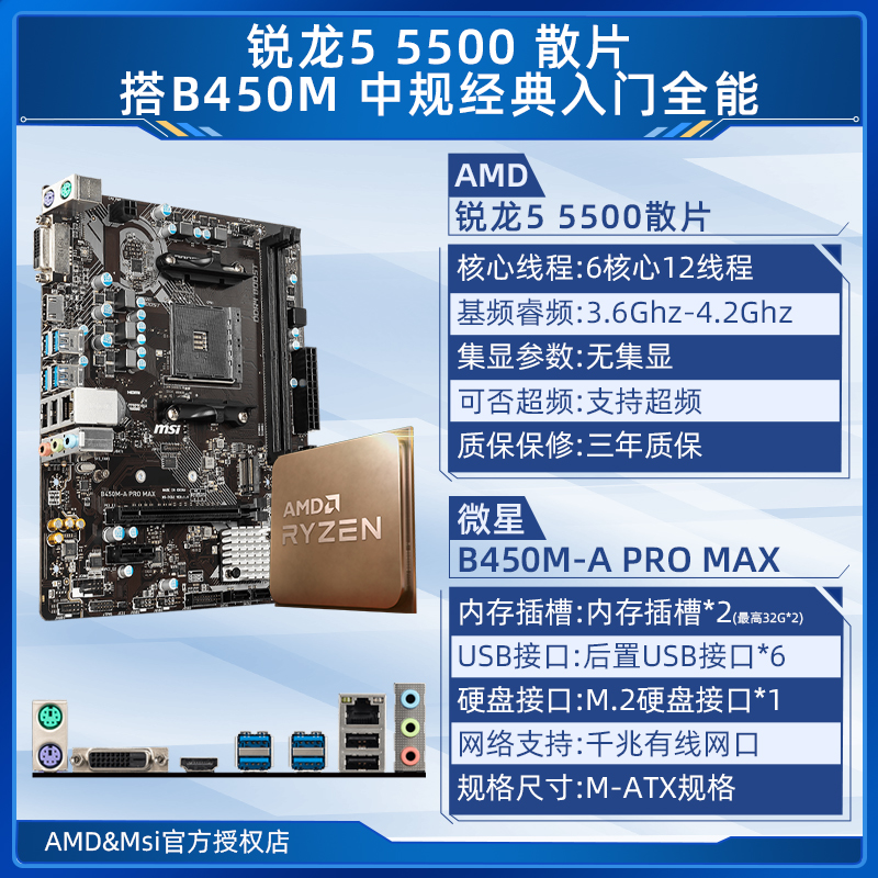 | nameOriginal | AMD Ryzen R5 4500 5500 5600 box bulk sheet + MSI motherboard CPU set mortar board U set |