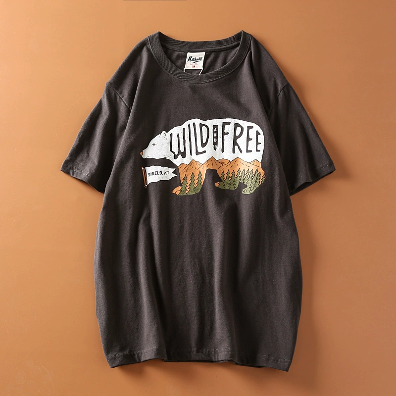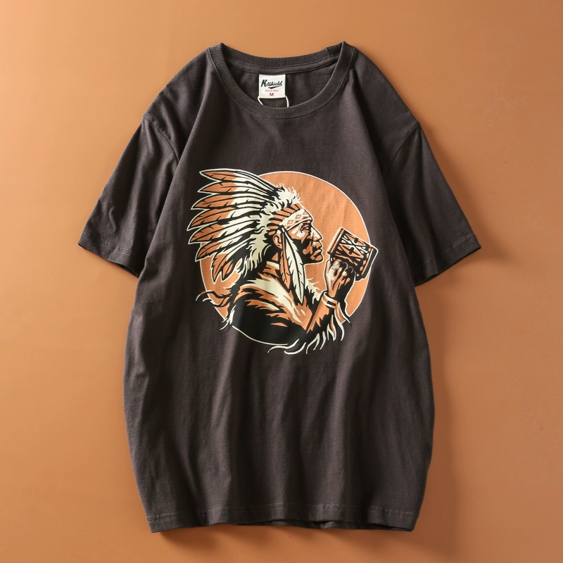| nameOriginal | American Ami khaki retro washed and brushed men's casual round neck fun printed short-sleeved T-shirt half-sleeved trendy |