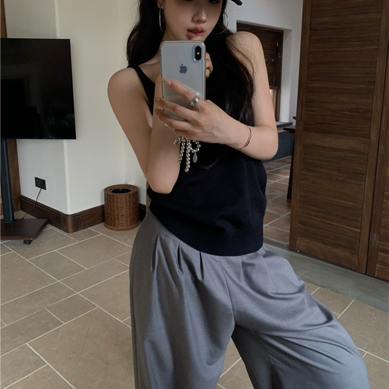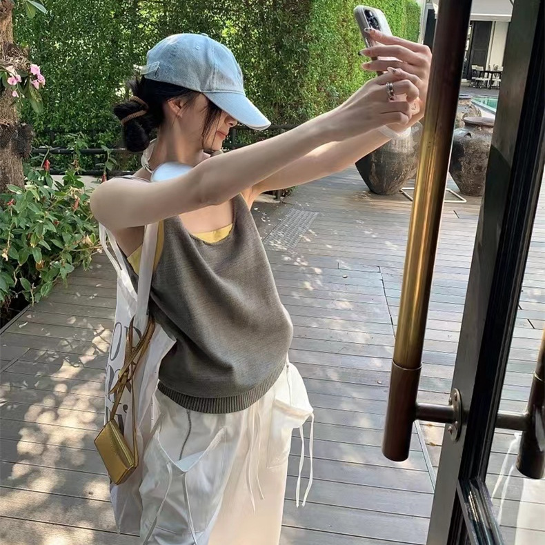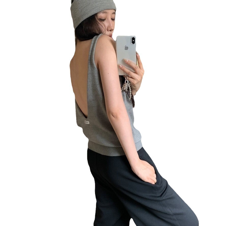 | nameOriginal | American Backless Design High-grade Vest Camisole Summer Sweet and Spicy Gray Sweater Top |