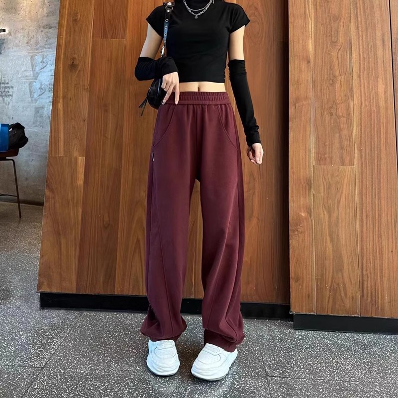 | nameOriginal | American Banana Pants Green Sports Pants Women's Casual Slim Wide Leg Pants for Autumn and Winter Red Purple Pink Sweatpants |