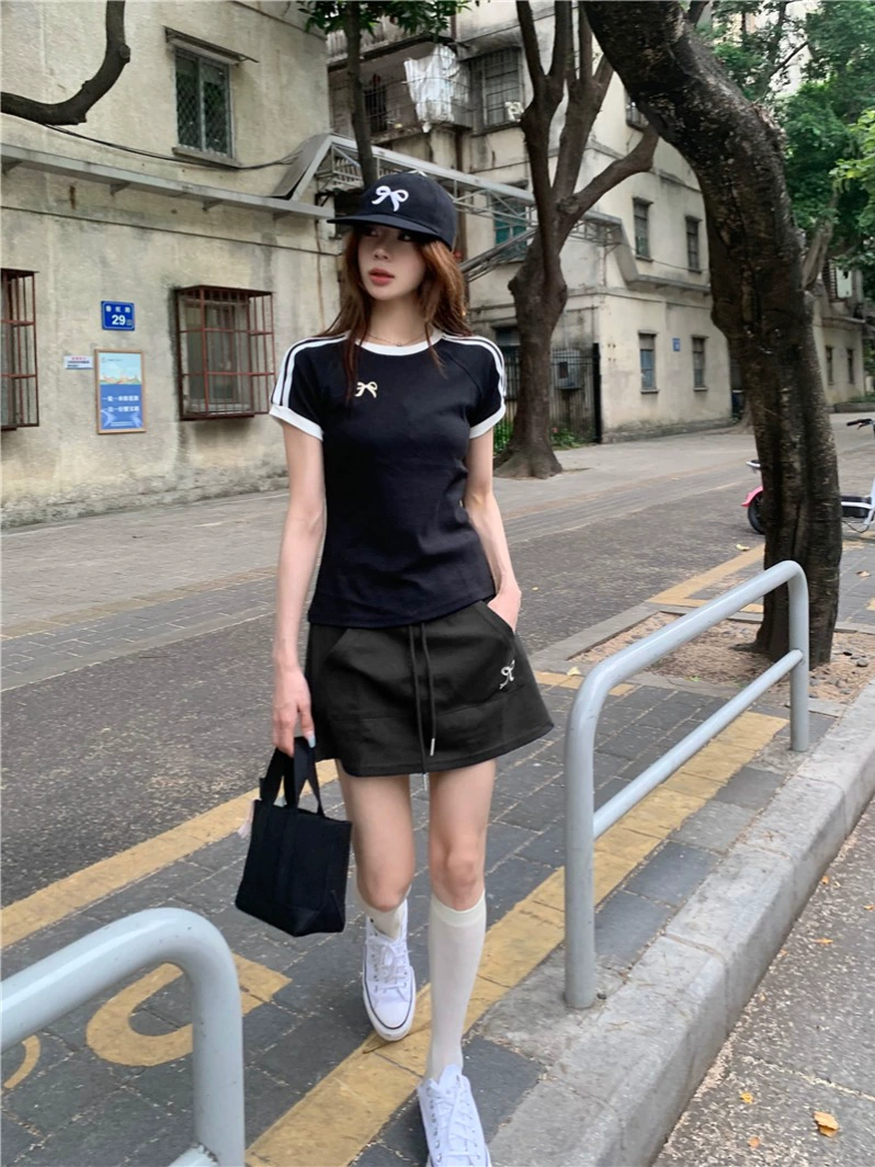 | nameOriginal | American black two-piece casual short-sleeved skirt set |