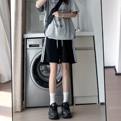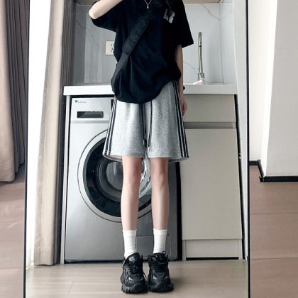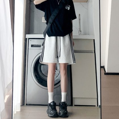 | nameOriginal | American Casual Grey Sports Shorts Women's Summer Loose High Waist Slim Medium Pants Straight Wide Leg Thin Pants |