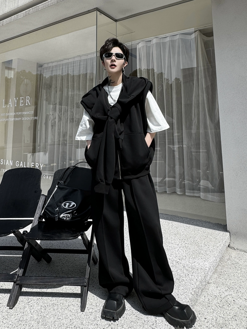 | nameOriginal | American casual hooded vest suit with shoulder pads |