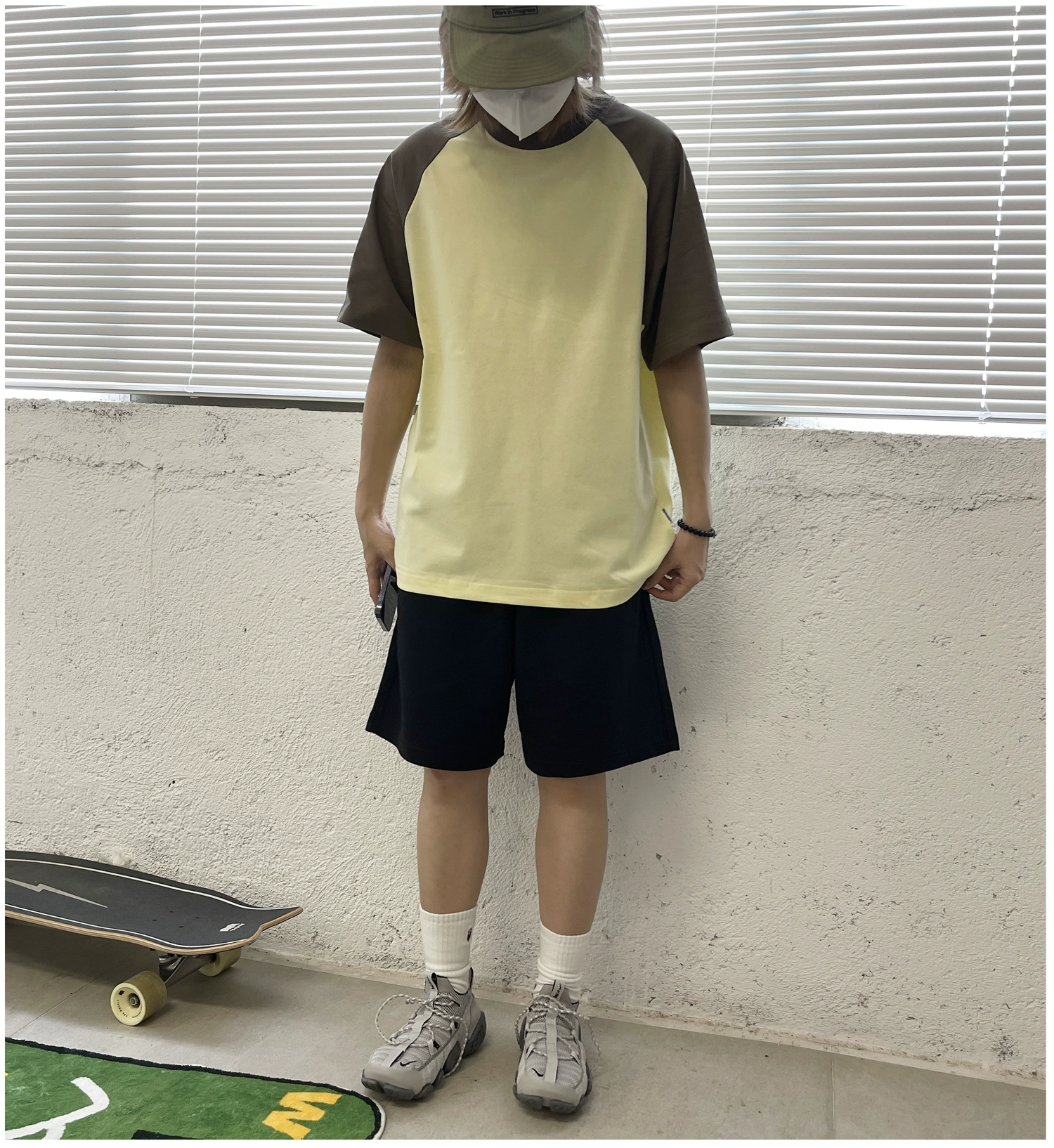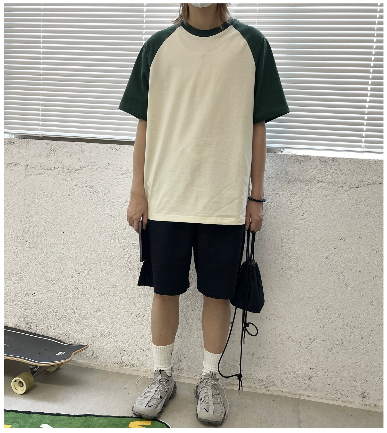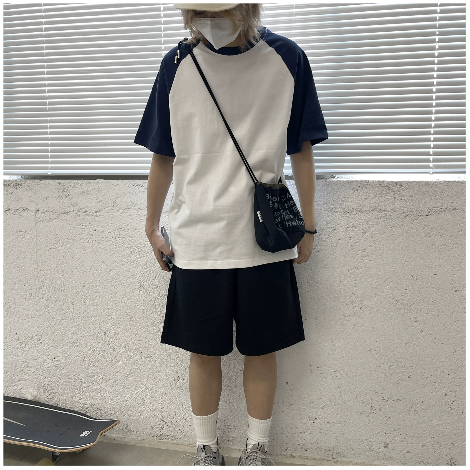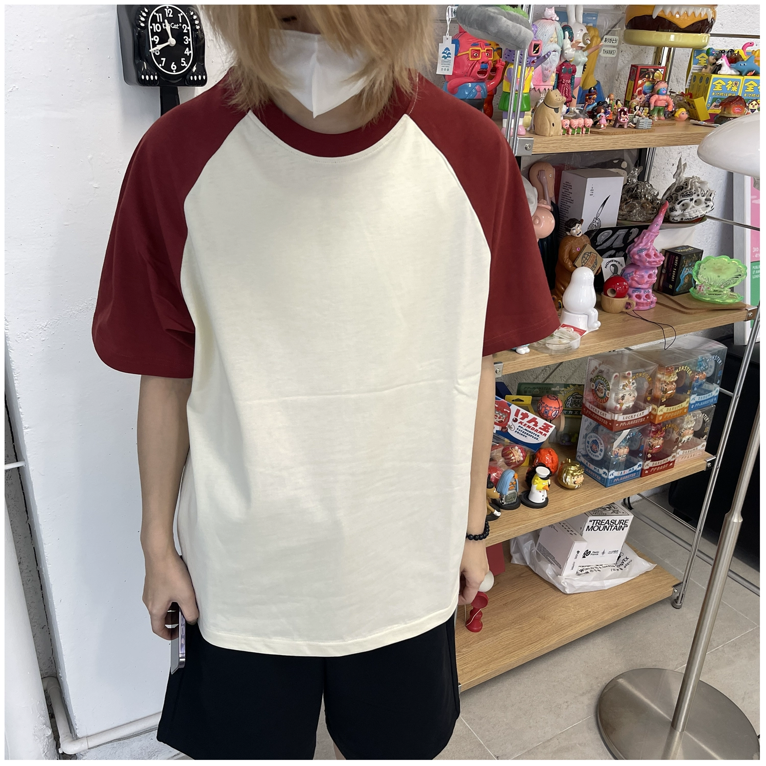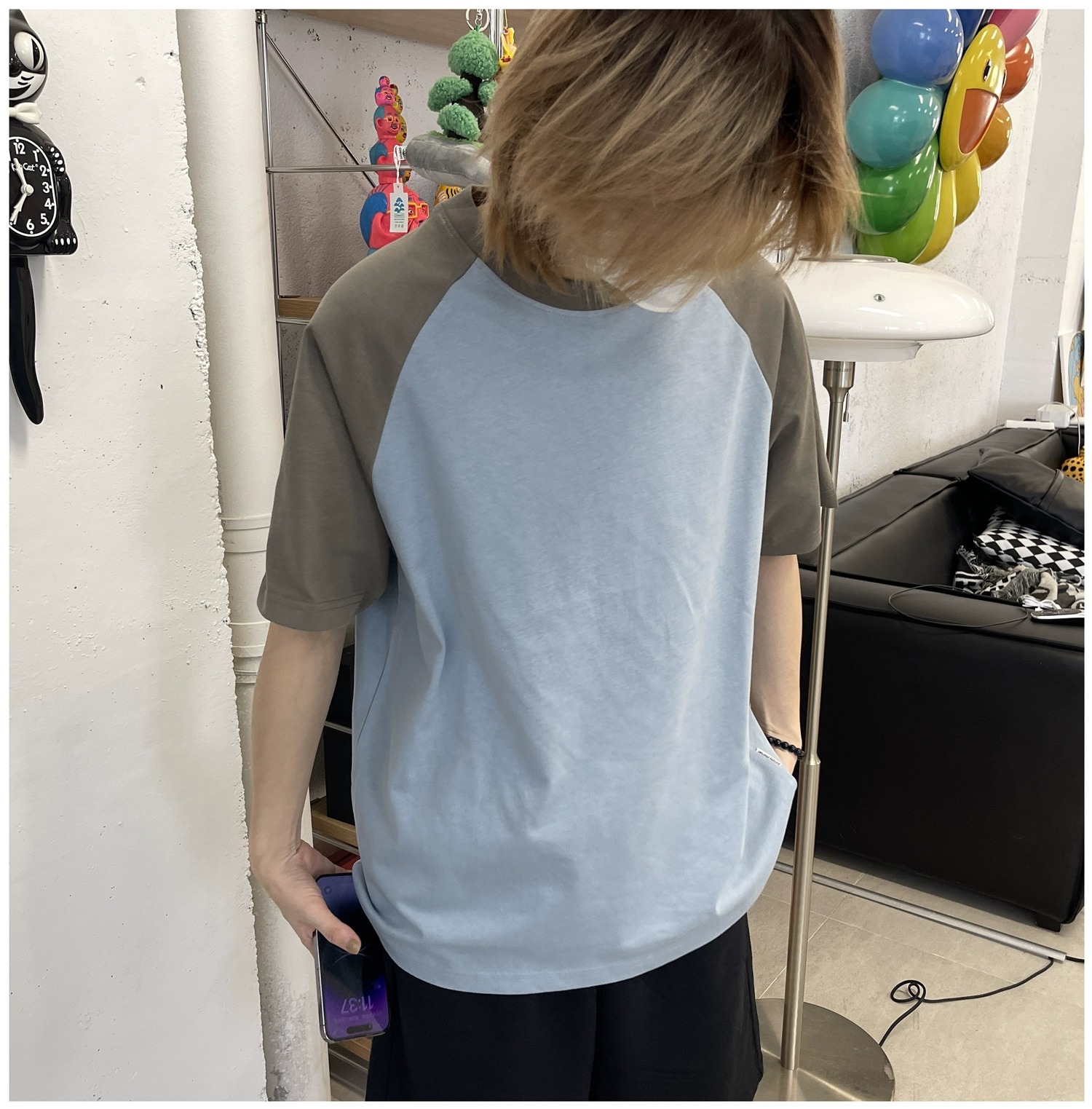 American casual loose pure cotton raglan contrasting color splicing trendy retro men's and women's couple short-sleeved T-shirt half-sleeved top