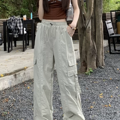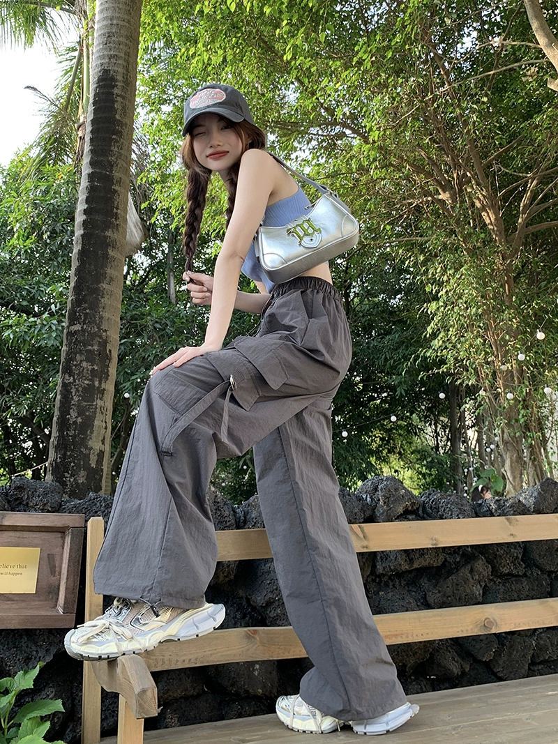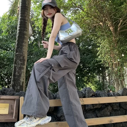 | nameOriginal | American Casual Overalls Women's 2024 Summer New Loose Leg Sports Pants High Waist Thin Casual Pants Trendy |