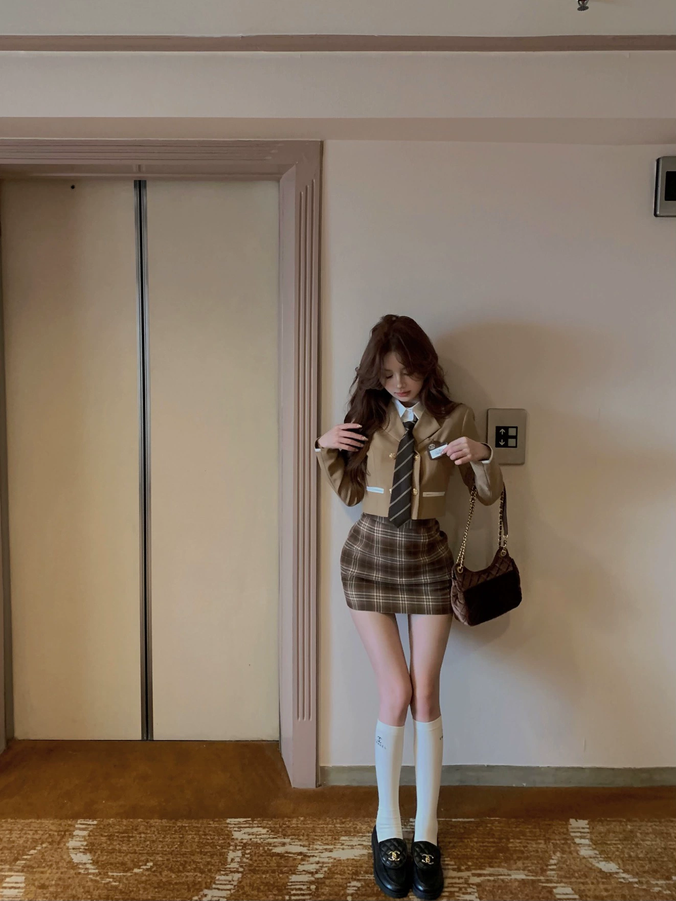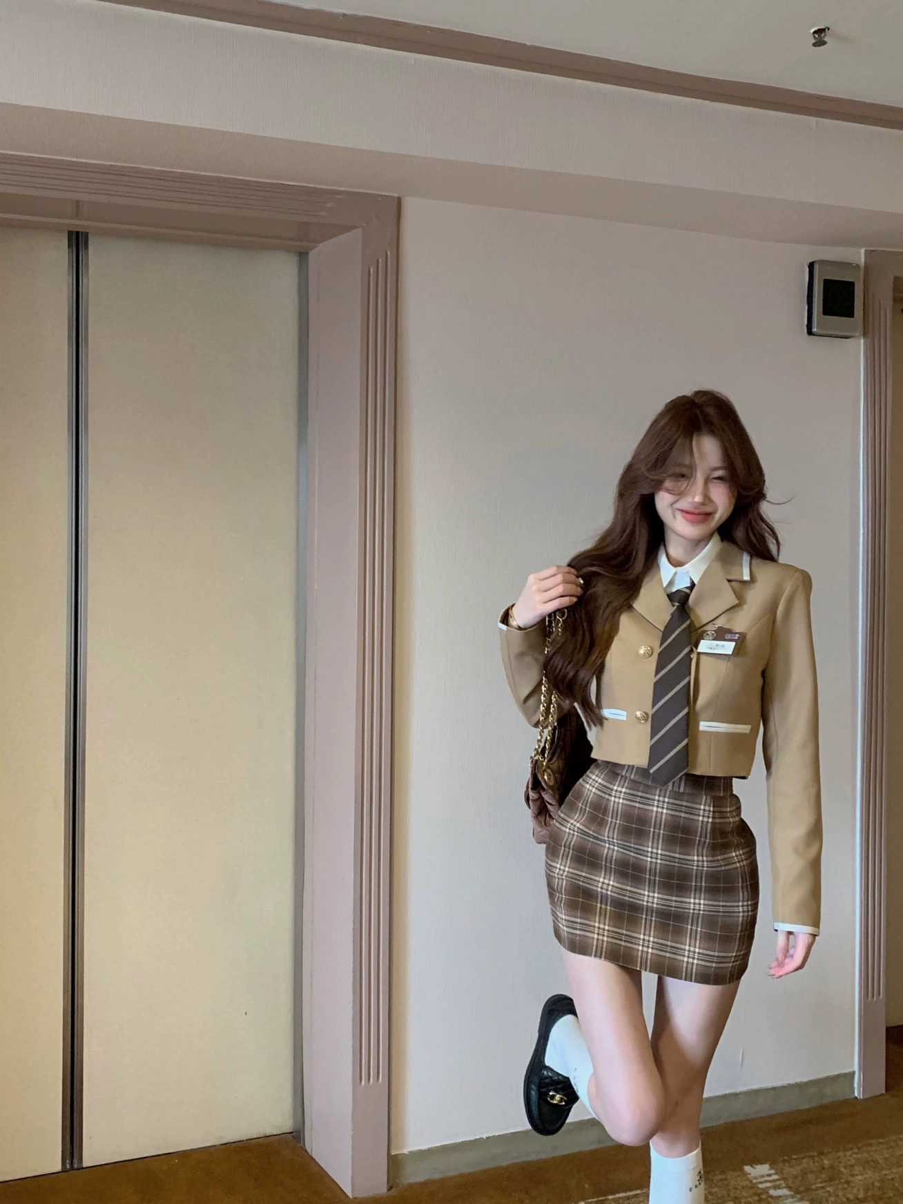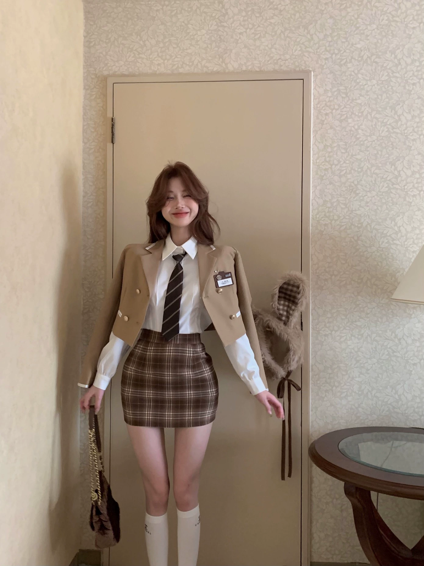 | nameOriginal | American college style hip-hugging skirt three-piece suit |