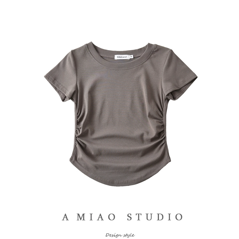 | nameOriginal | American design side shirring pure lust hot girl style waist slimming short-sleeved slim T-shirt summer short top |