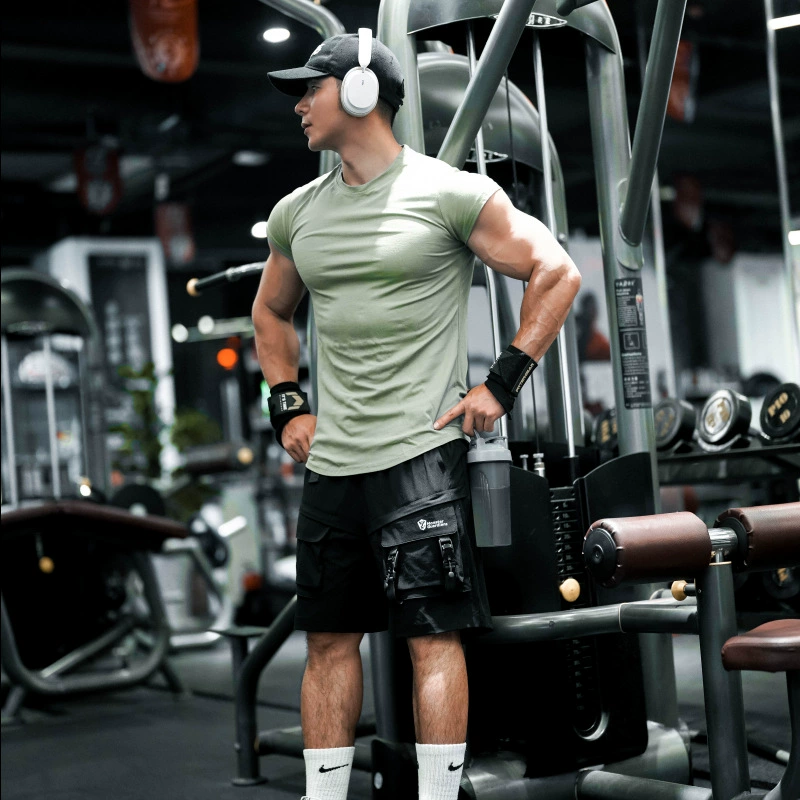 | nameOriginal | American fitness short-sleeved men's fashion brand round neck iron training and running solid color versatile slim three-quarter sleeve sports T-shirt |