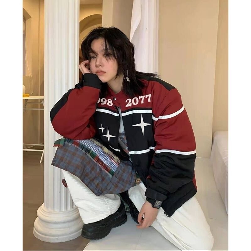 | nameOriginal | American high street mu Sicheng Red Coat Women's Spring motorcycle baseball uniform small Wang Yi same coat jacket |
