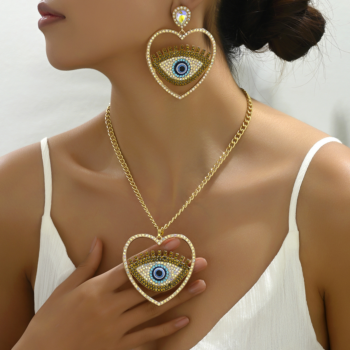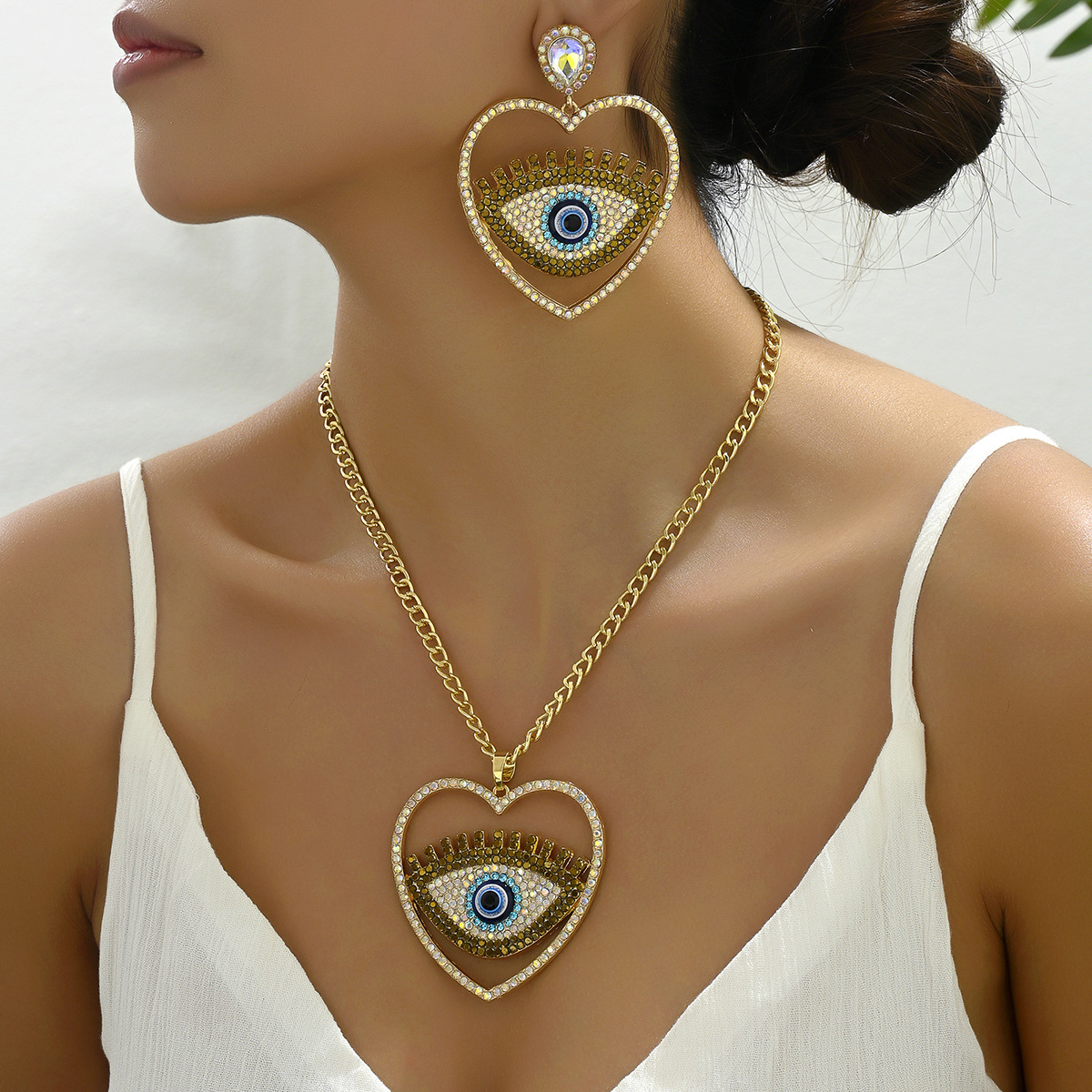 | nameOriginal | American hip hop retro style earrings necklace suit personality devil's eye small long clavicle chain wholesale suit |
