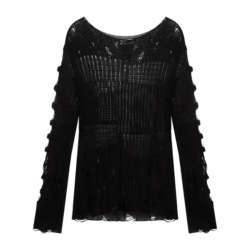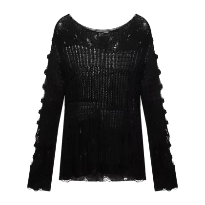 | nameOriginal | American hot girl black sexy ripped long-sleeved sweater |