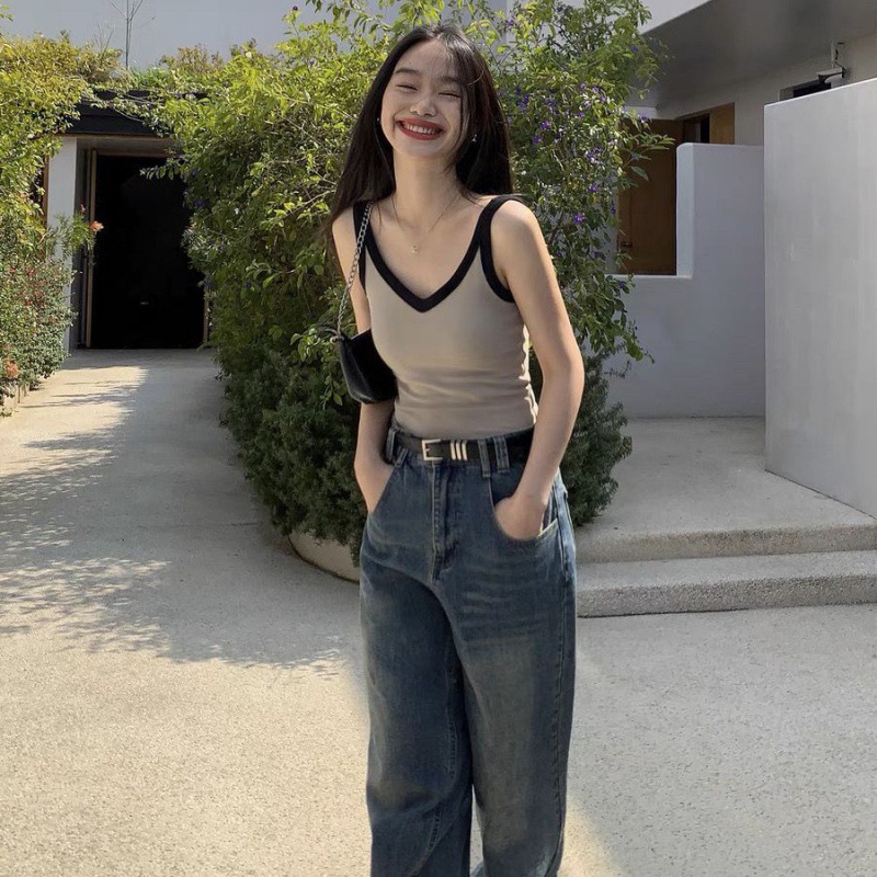 | nameOriginal | American Hot girl contrast color V-neck camisole women's summer sports inner wear outer wear plus size bottoming shirt sleeveless top |