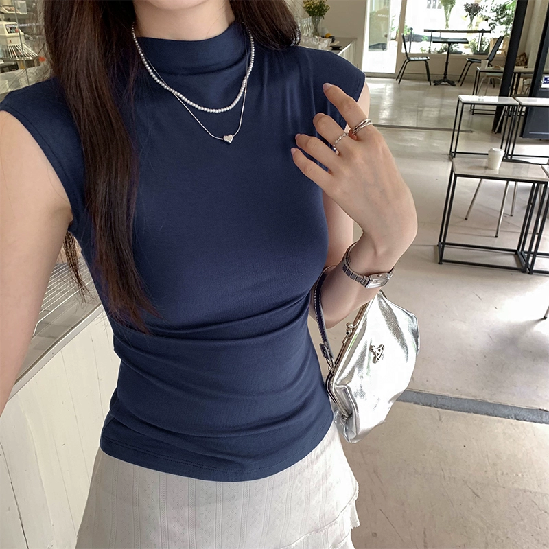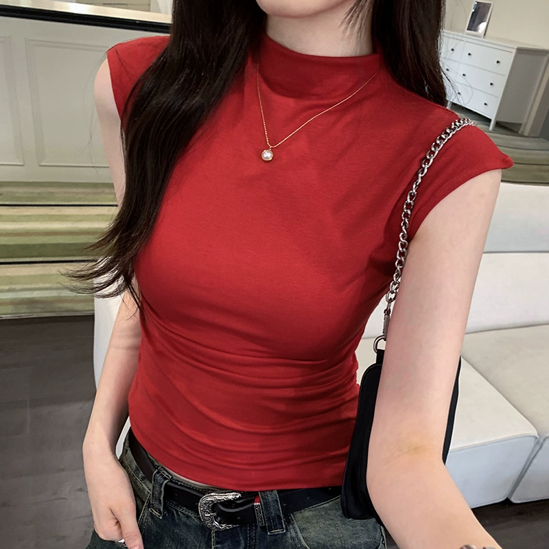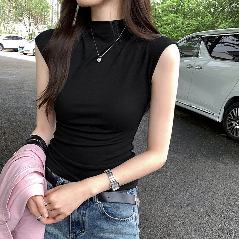 | nameOriginal | American hot girl Korean style chic and gentle sleeveless waistcoat short-sleeved T-shirt for women summer 2024 new half turtleneck top |