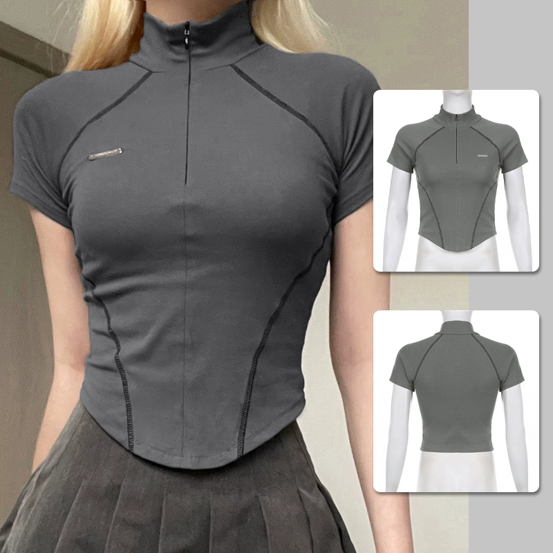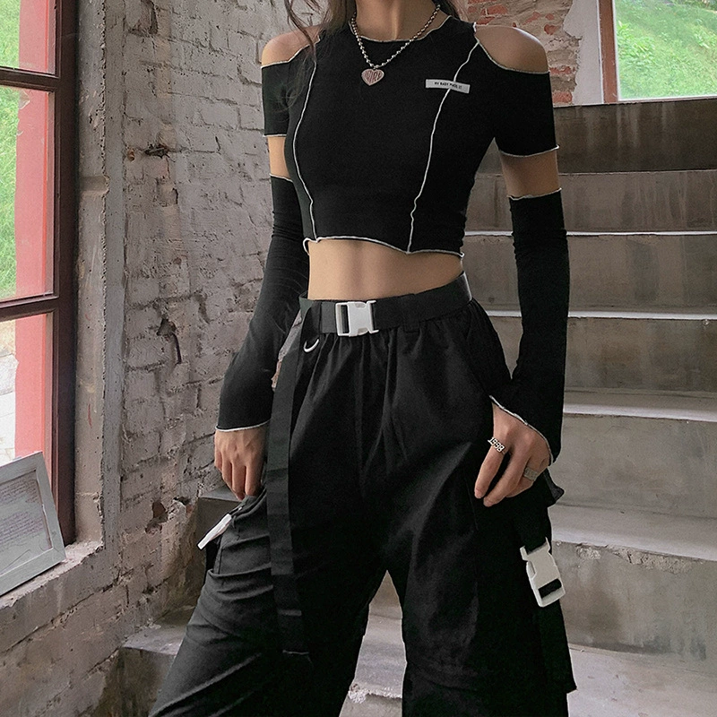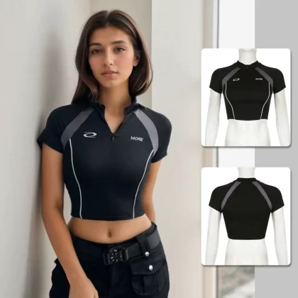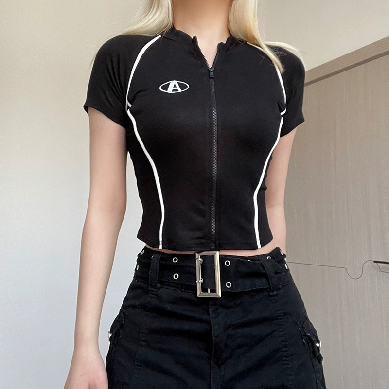| nameOriginal | American hot girl motorcycle style short sweet and spicy short-sleeved tight top female jazz jazz dancer group black singing outfit |