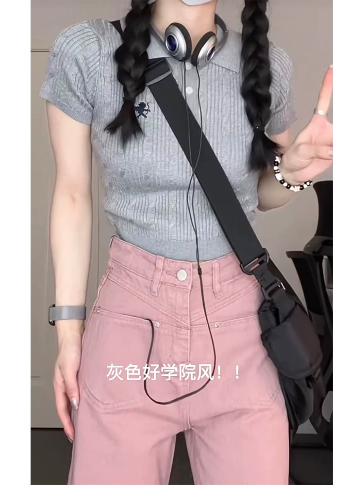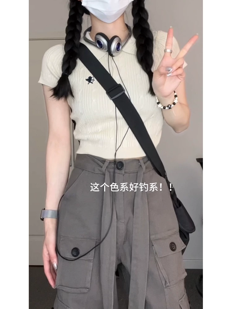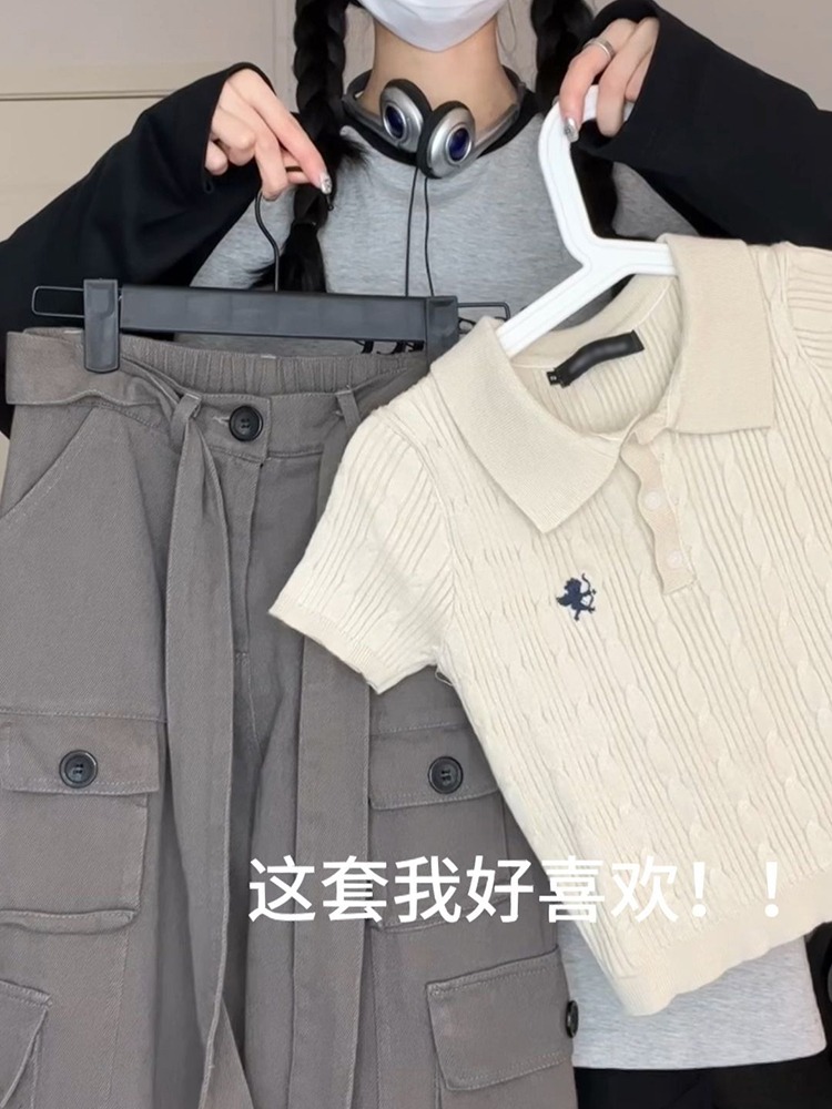 | nameOriginal | American Hot Girl Right Shoulder Short Sleeve T-Shirt Women's Summer Design Niche Polo Neck Sweater Slim Retro Short Top |