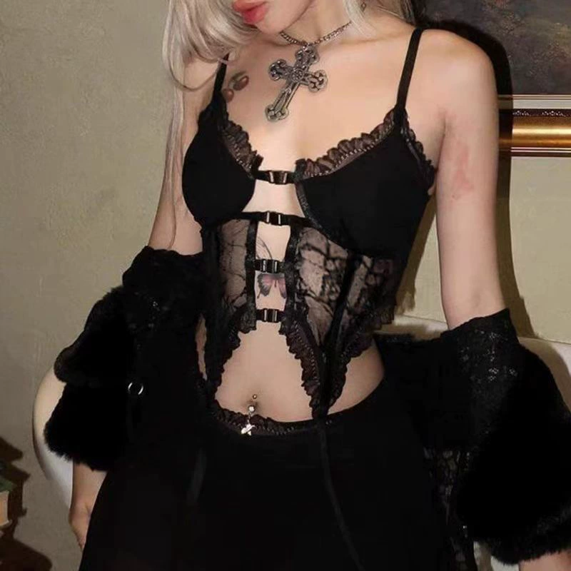 | nameOriginal | American hot girl spring and summer lace camisole female short sexy jazz dancer group style black inner top |