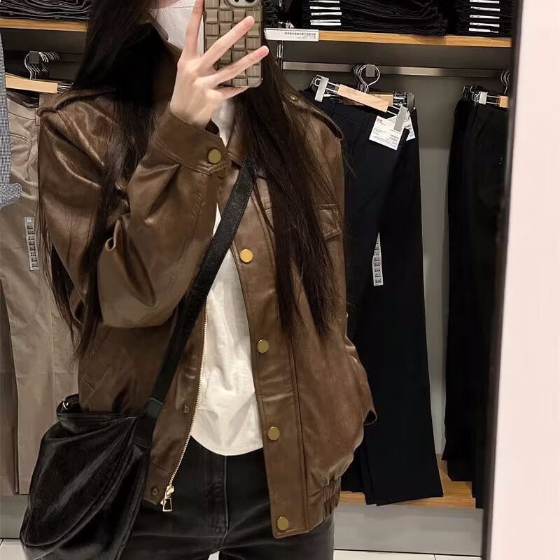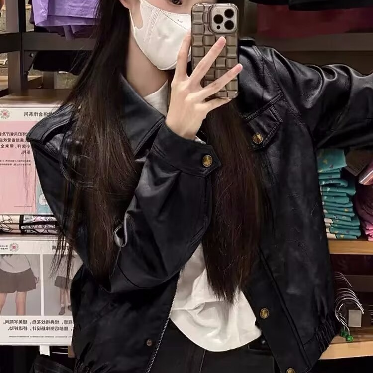 | nameOriginal | American leather jacket women's short spring and autumn European and American style new fashion simple Slimming Western style all-match leather jacket |